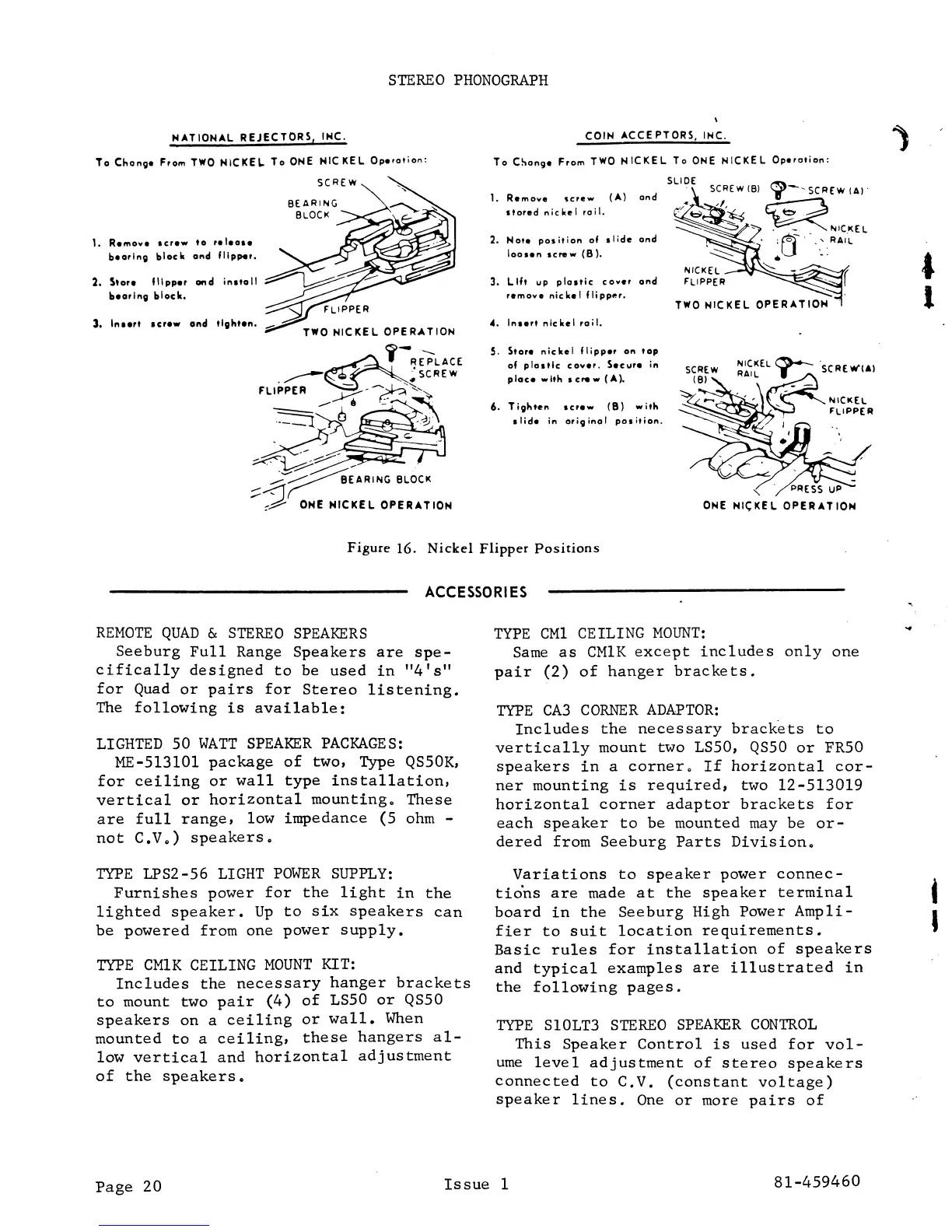 Seeburg STD4 - Coin Acceptors; National Rejectors