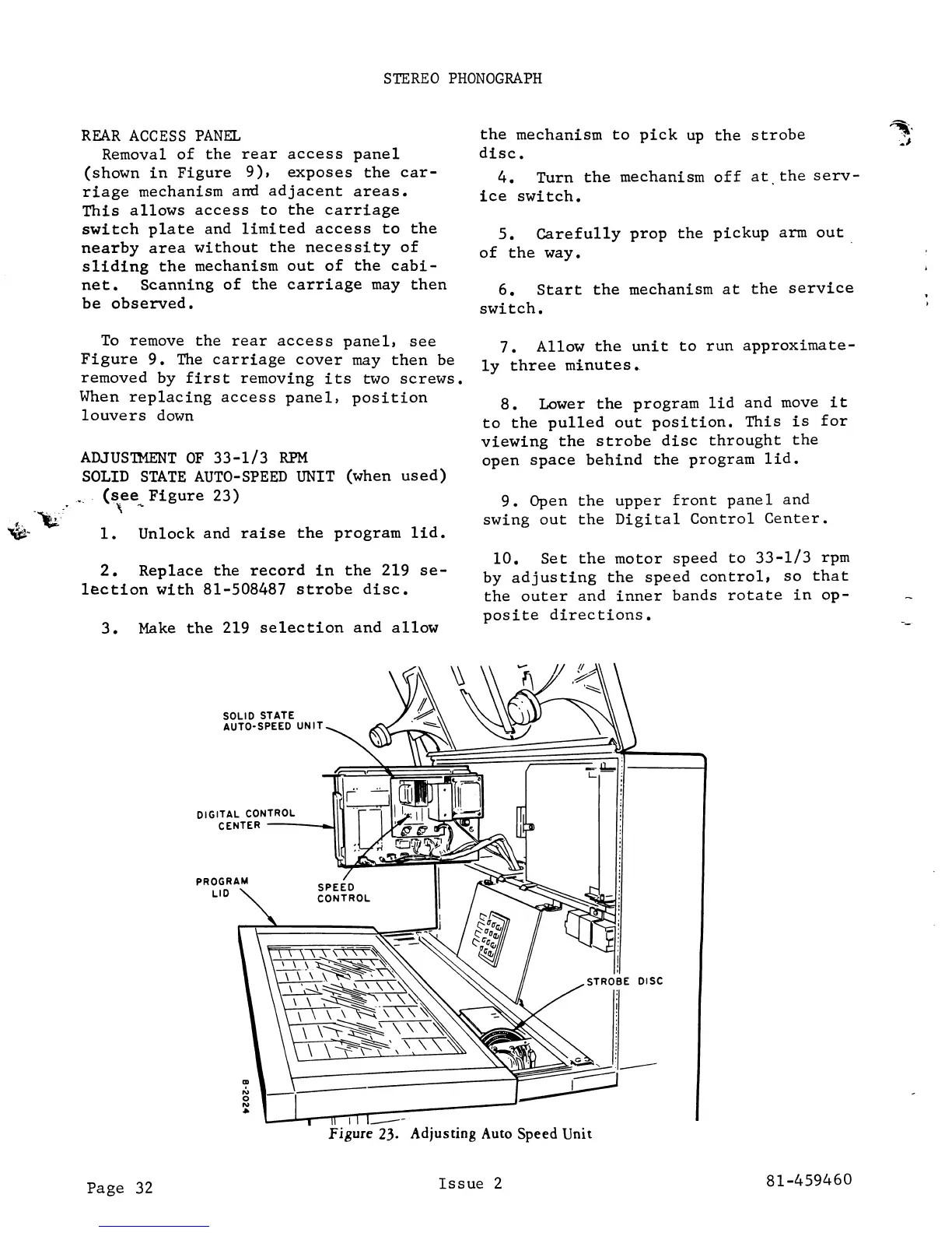 Seeburg STD4 - Rear Access Panel; Solid State Auto-Speed Unit; Adjusting Auto Speed Unit