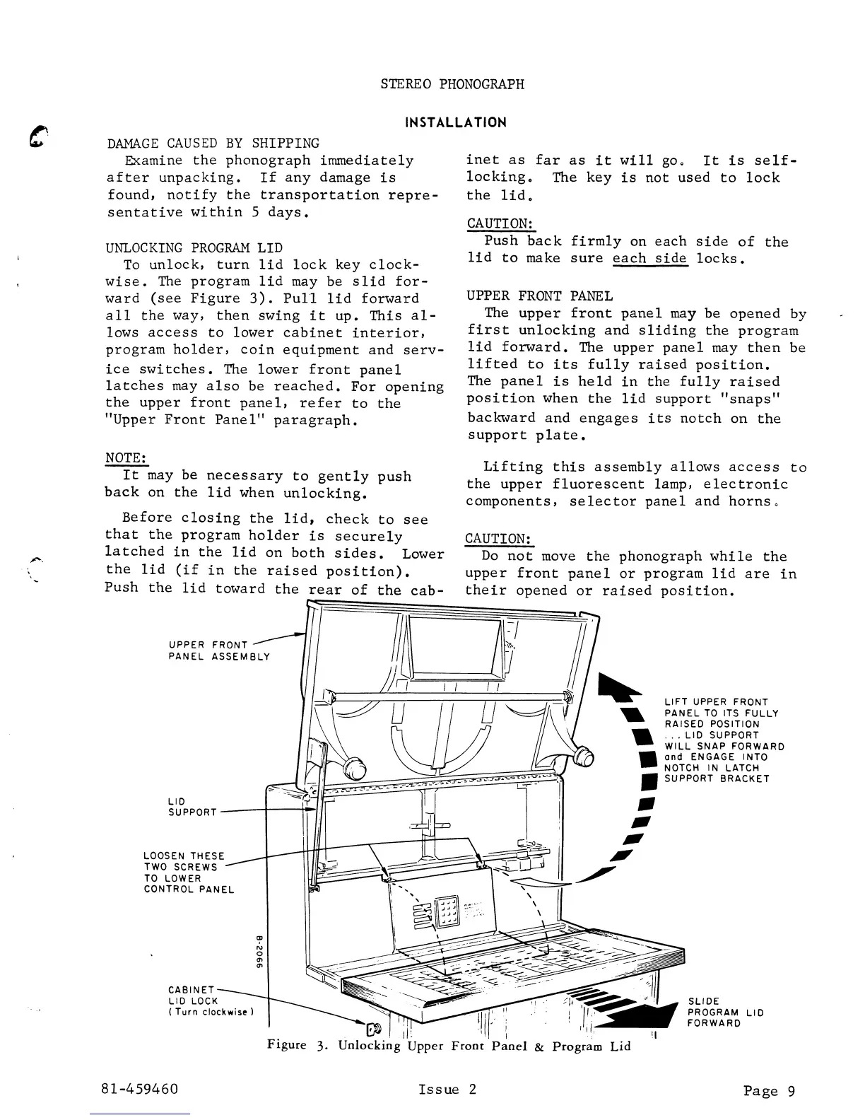 Seeburg STD4 - Stereo Phonograph Installation Guide; Unlocking the Program Lid