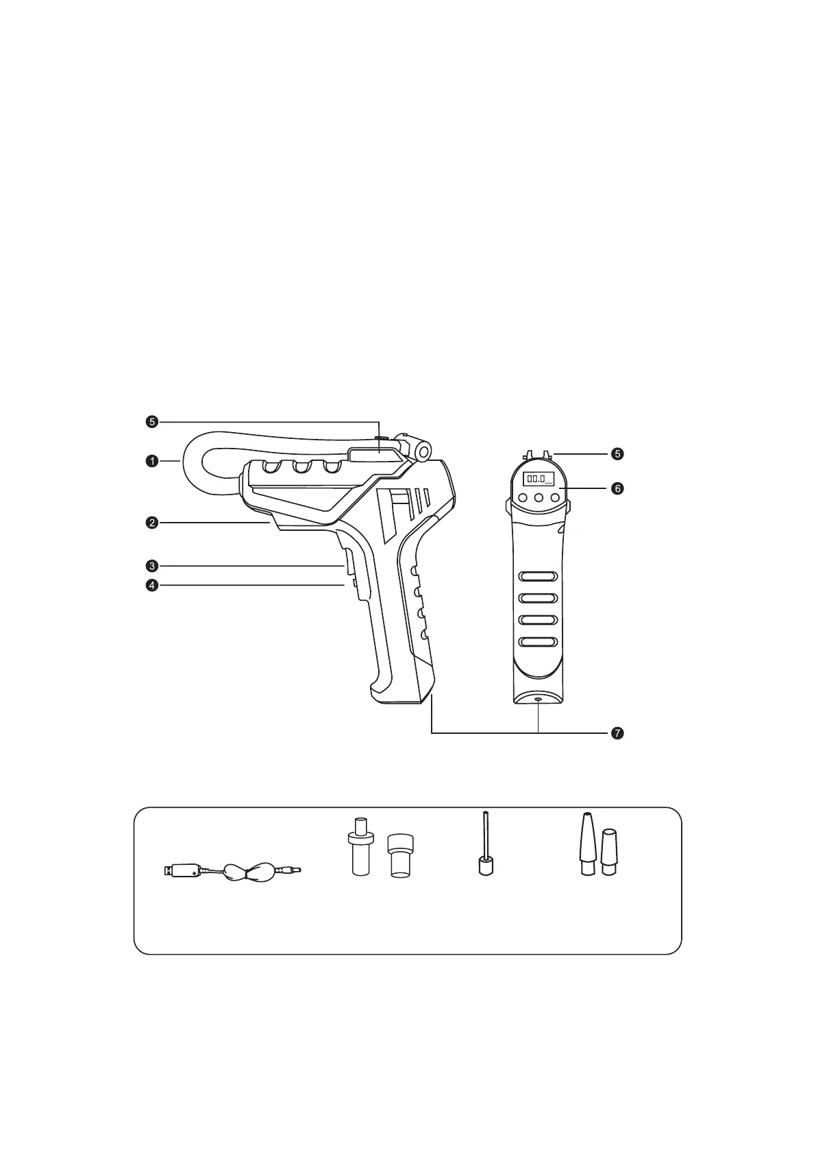 Leveringsomvang: Accu-compressorpomp, gebruiksaanwijzing, USB-laadkabel, Schrader/Auto-ventiel (aan het product bevestigd), 2 Presta-ventielen