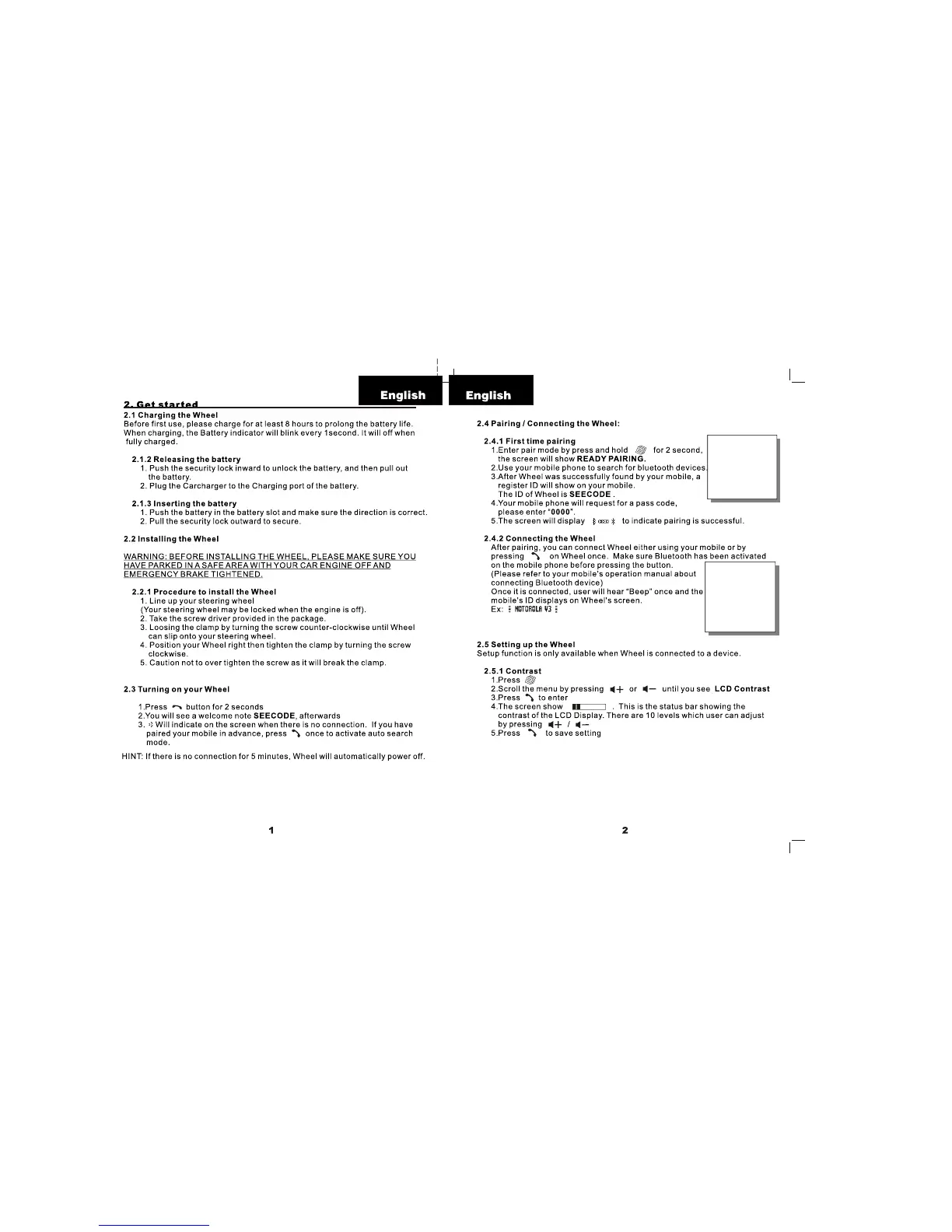 Seecode Wheel - Get Started; Charging the Wheel; Installing the Wheel; Turning on your Wheel