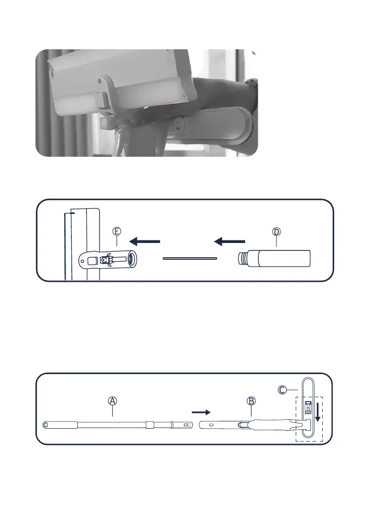 1. Richt de telescoopstang „A“ naar de opening van de hoekstang „B“ en vergrendel