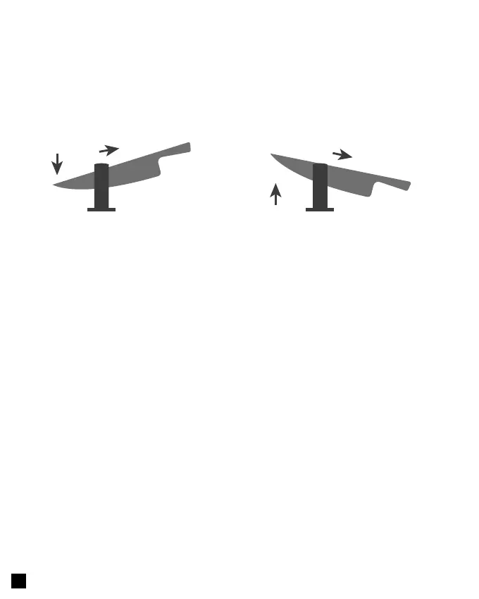 2 Passez ensuite plusieurs fois le couteau dans l‘aiguiseur avec la pointe du