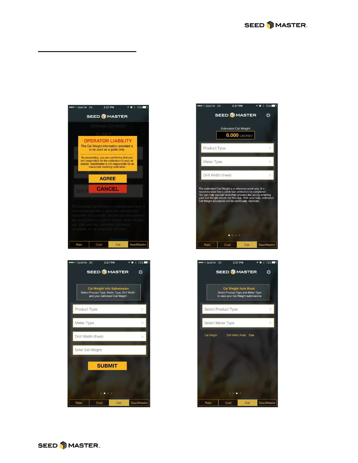 Figure 6: Cal. Tab. Pg2 → This page gives you the ability to submit your cal weights.