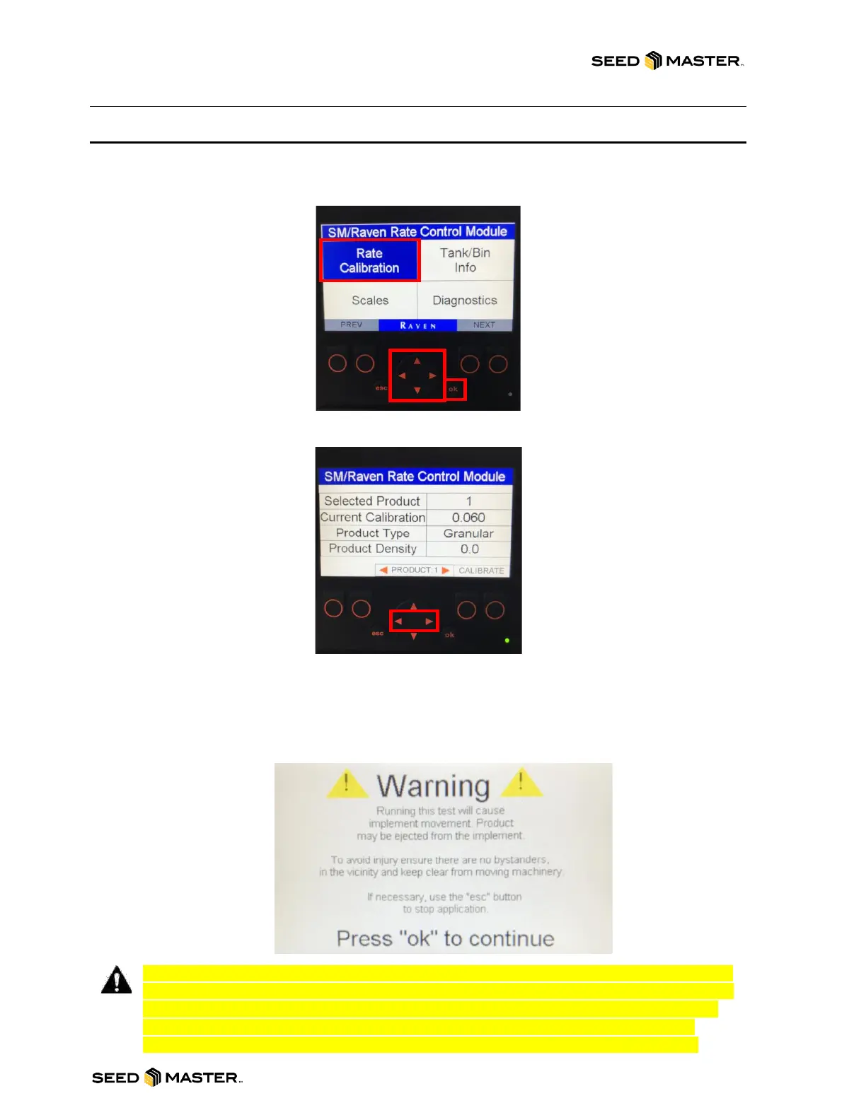 3. Touch “ok” to enter the “Rate Calibration” info screen.