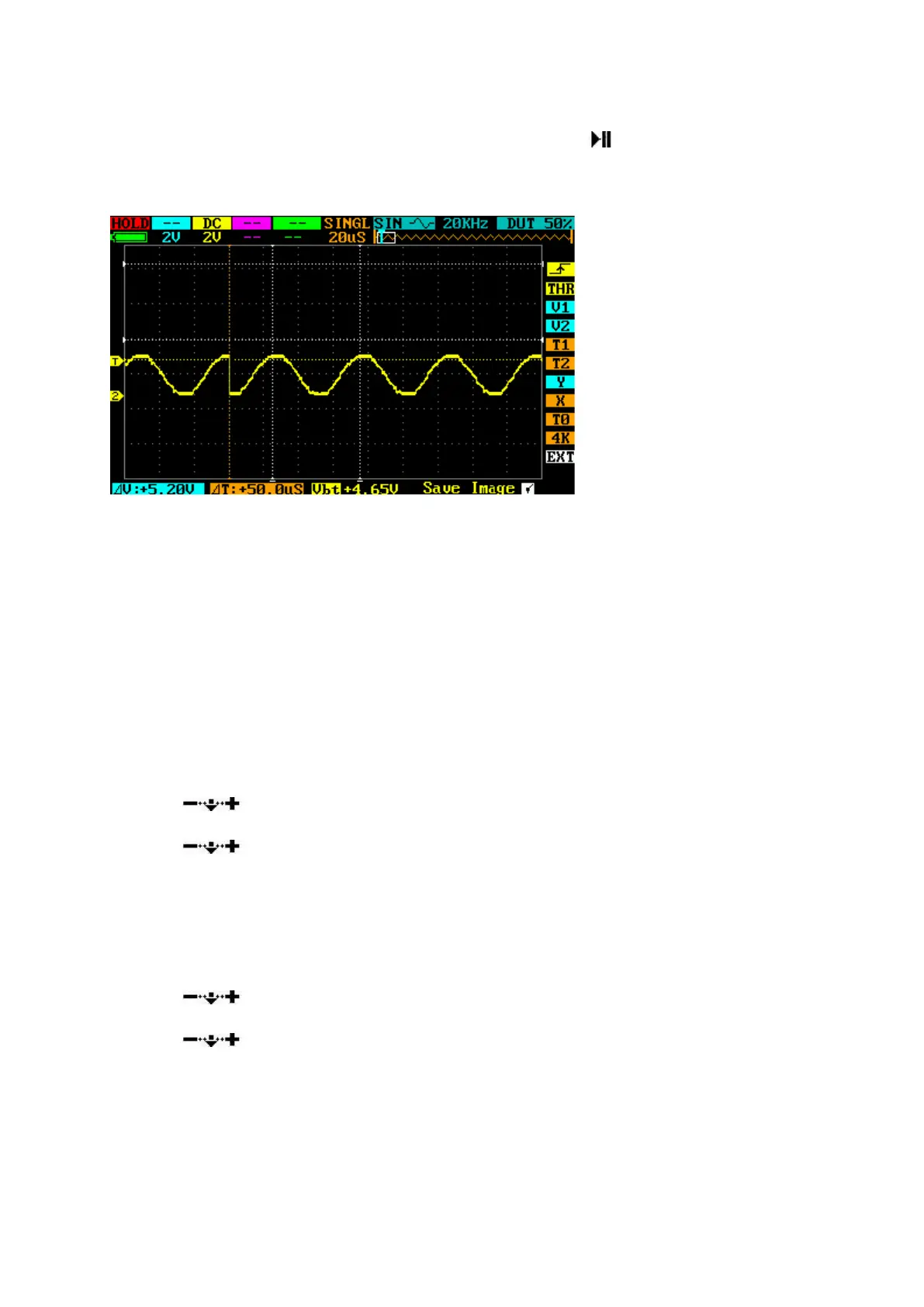 There are several measuring cursors in DSO203. They are displayed a narrow dotted horizontal and