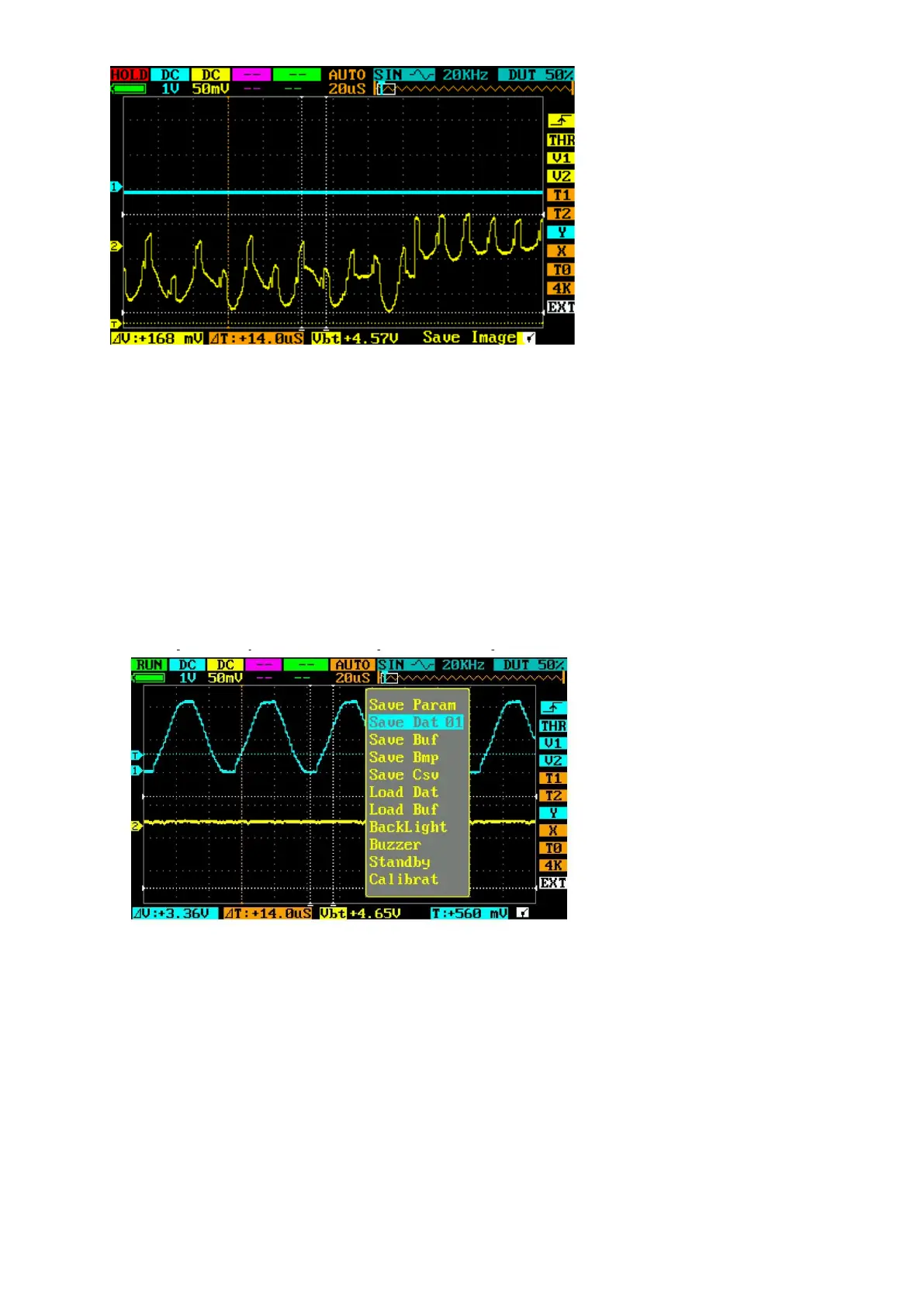 1. Input a standard signal to CH_A. Press ■, and choose Save Dat 01 to save waveform, as shown