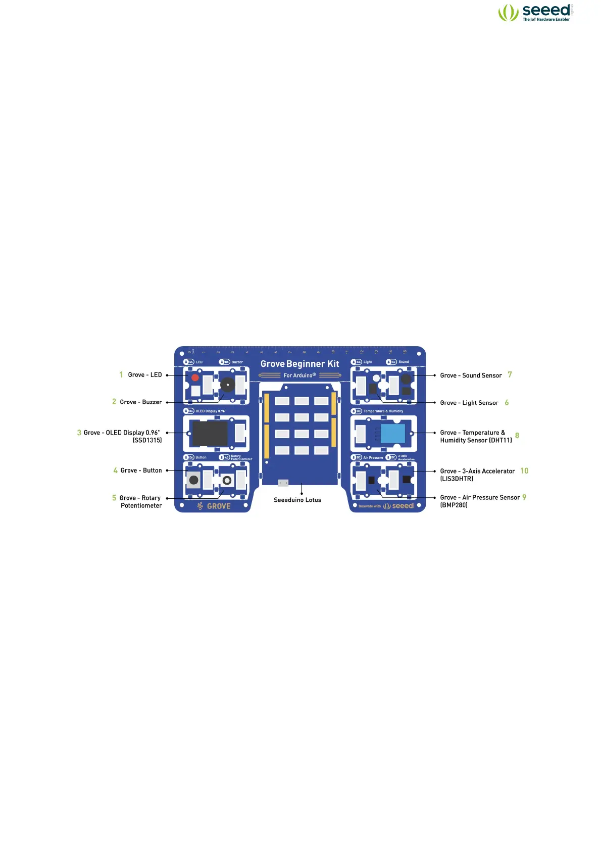 Grove Beginner Kit for Arduino is one of the best Arduino Beginner Kit for beginners. It includes
