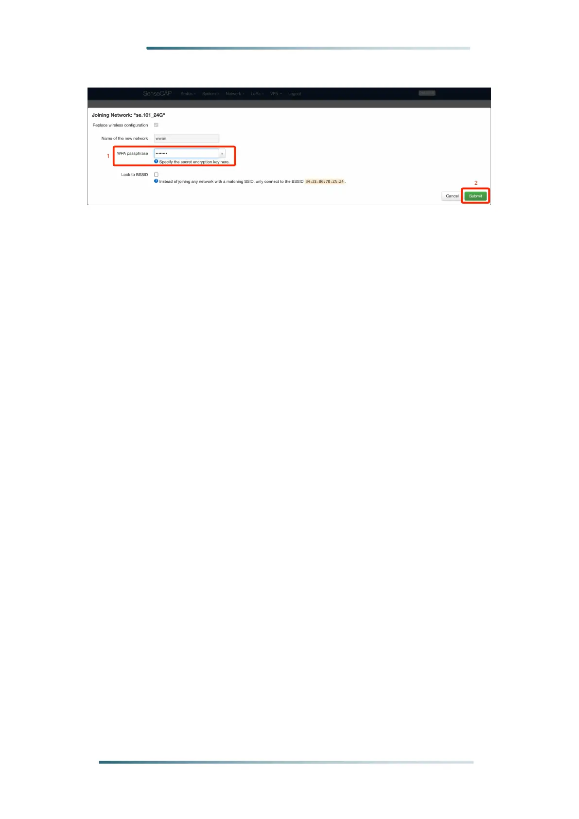 Submit the Wi-Fi password, and then click “Submit and “Save”.