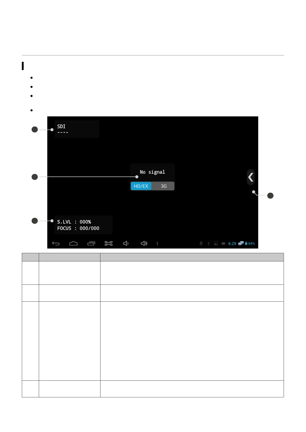 When no video is entered, it displays "No Signal" on the screen. In SDI mode,