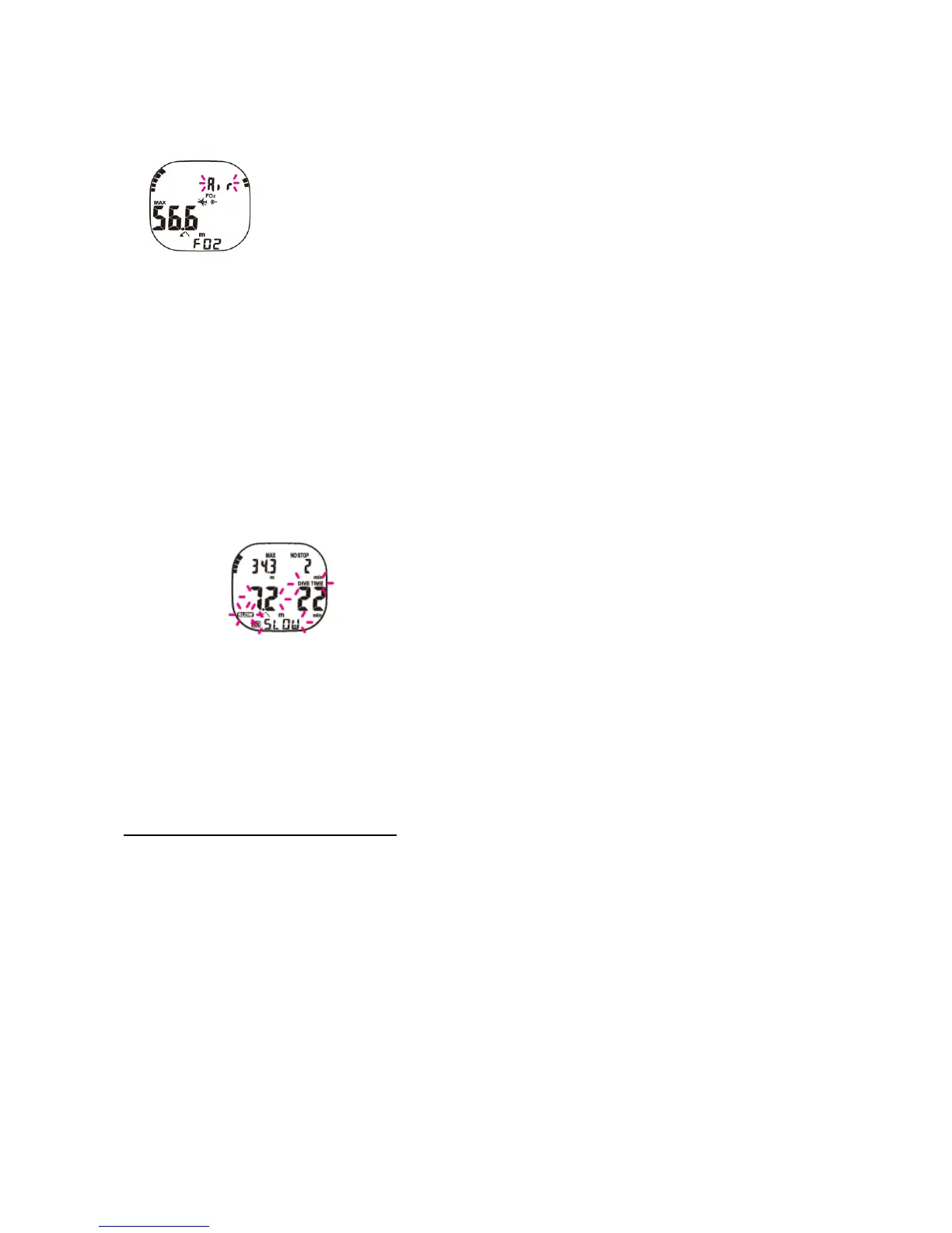 • Ascending too quickly will be shown by a flashing indication of the current depth for six seconds, and the word ‘SLOW’