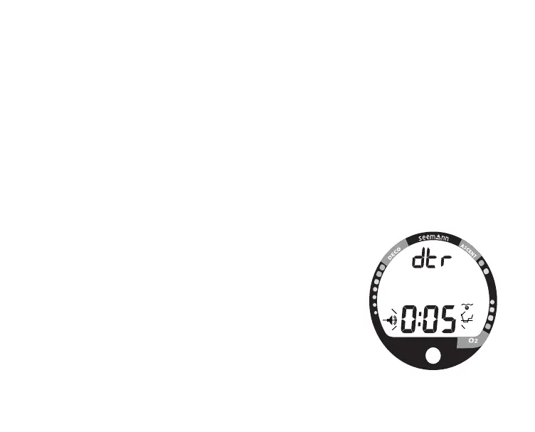 • The graphic dtr and Alarm and Dive Mode icons appear