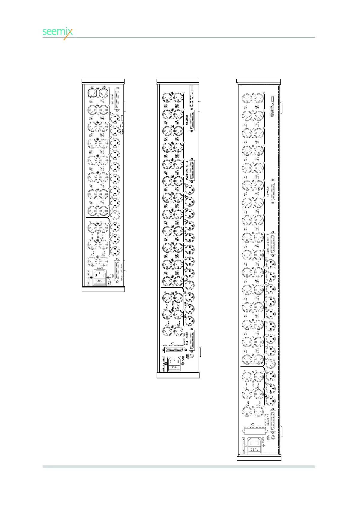 seemix seeport 2 - 5.6 Back Panel Layouts; Layout Details for Mixer Configurations