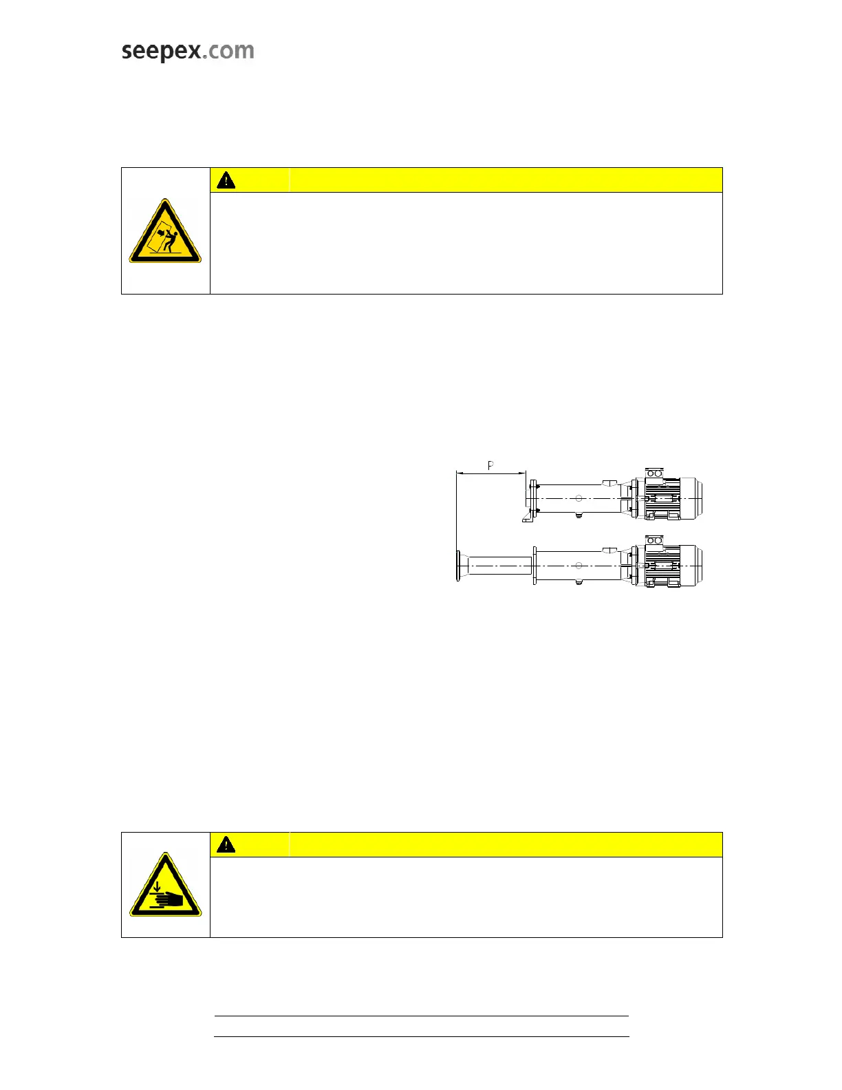 ! Pay attention to the dimensions, weight and centre of gravity of the pump