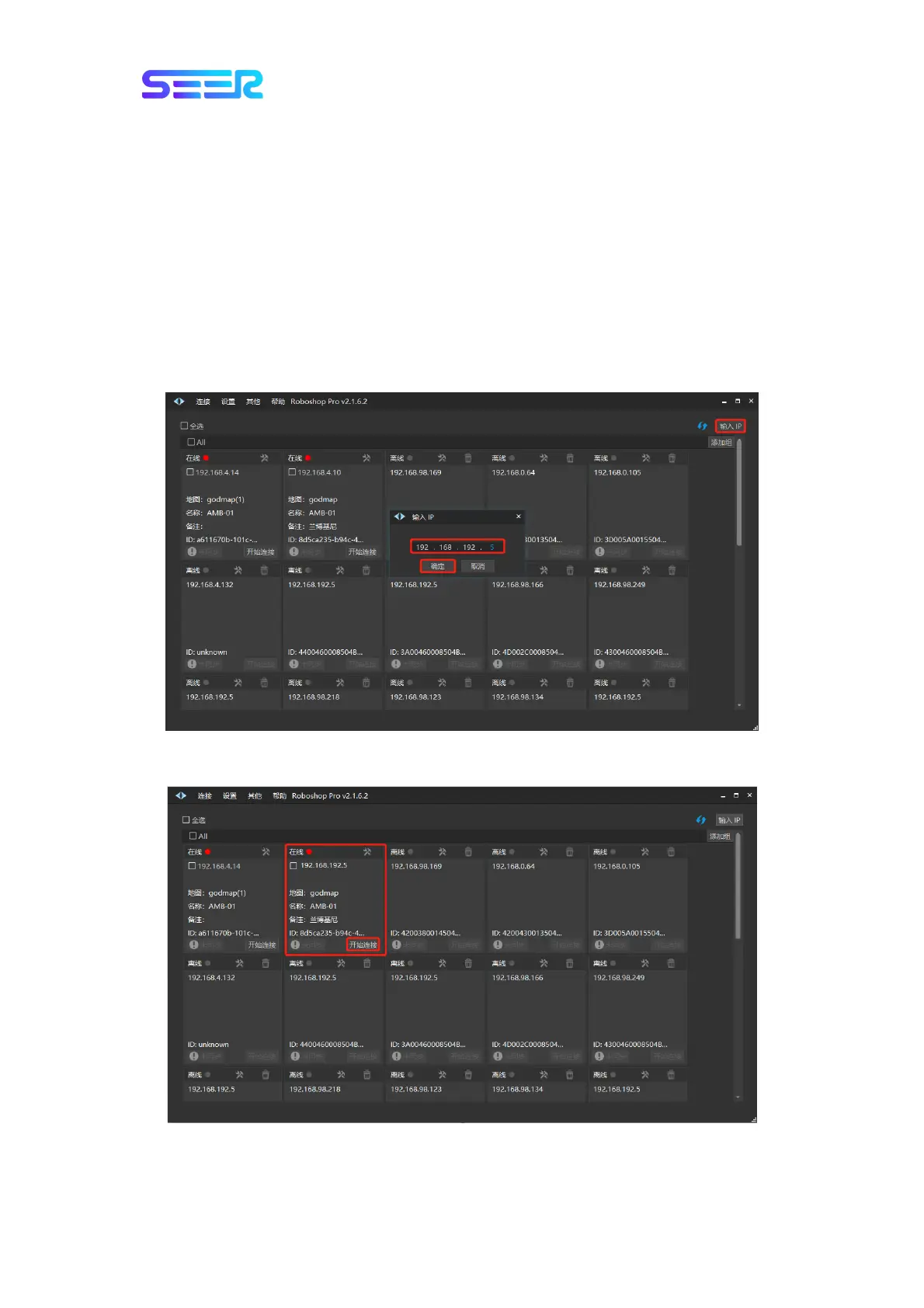 IP] address as [192.168.192.5] to add the robot.