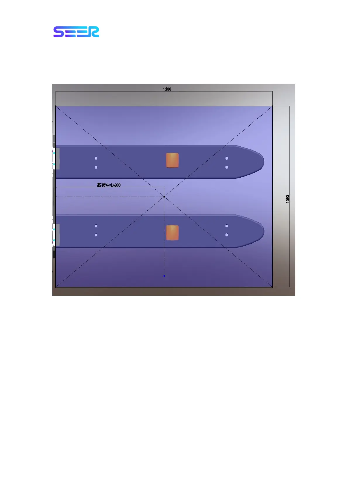 The figure below illustrates that the load center is 600mm at a full load of 500kg and a cargo