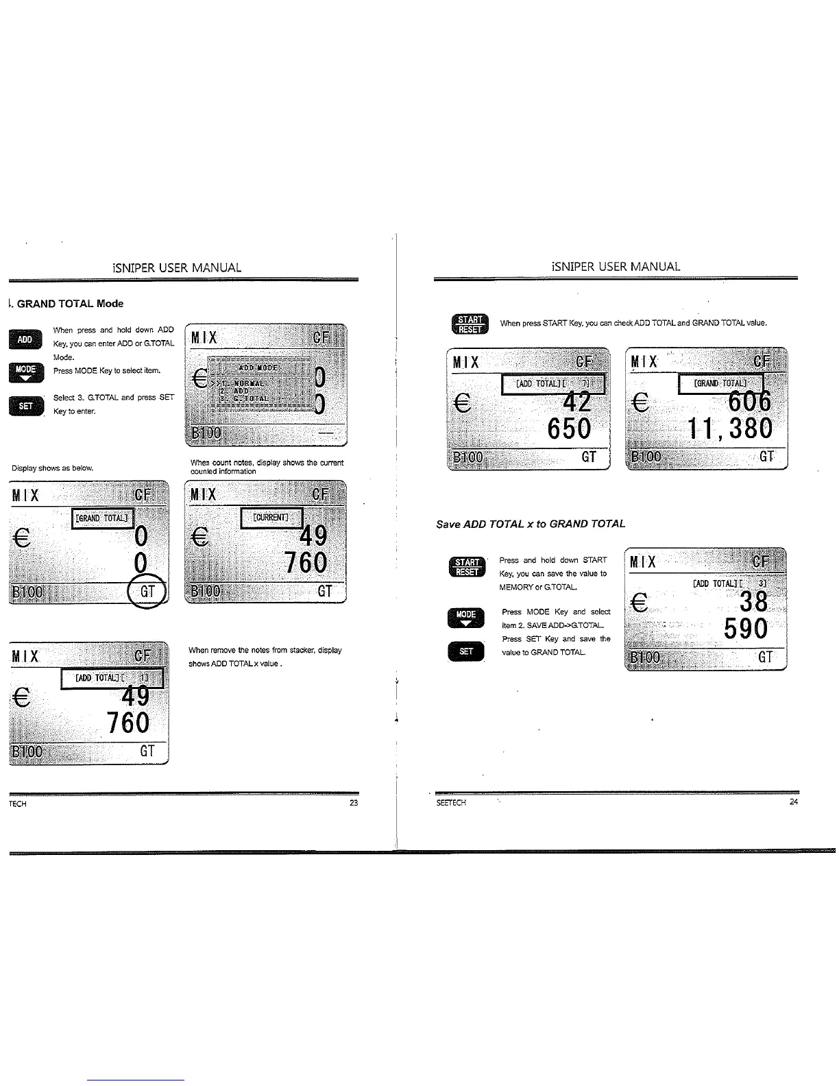 SeeTech iSniper - Grand Total Mode Operations; GRAND TOTAL Mode; Save ADD Total to Grand Total