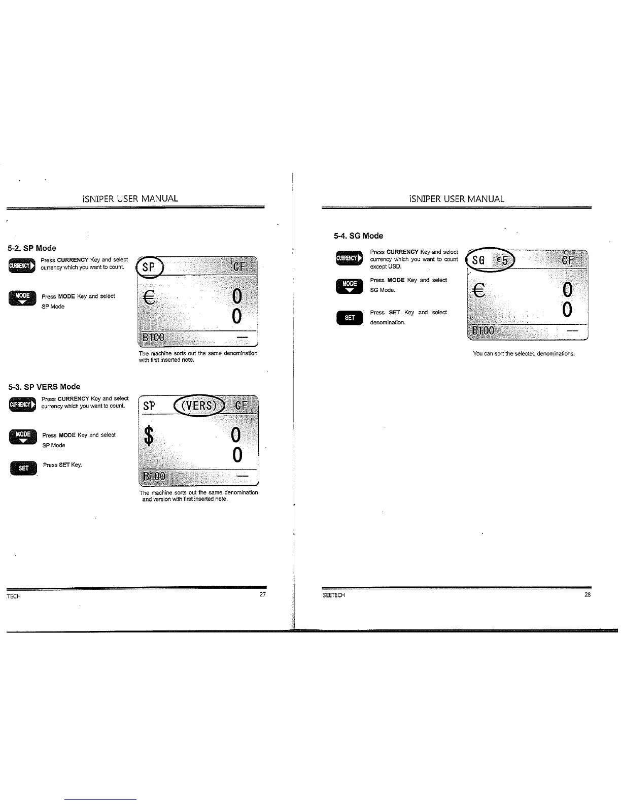 SeeTech iSniper - Specific Sorting Modes; SP Mode; SP VERS Mode; SG Mode