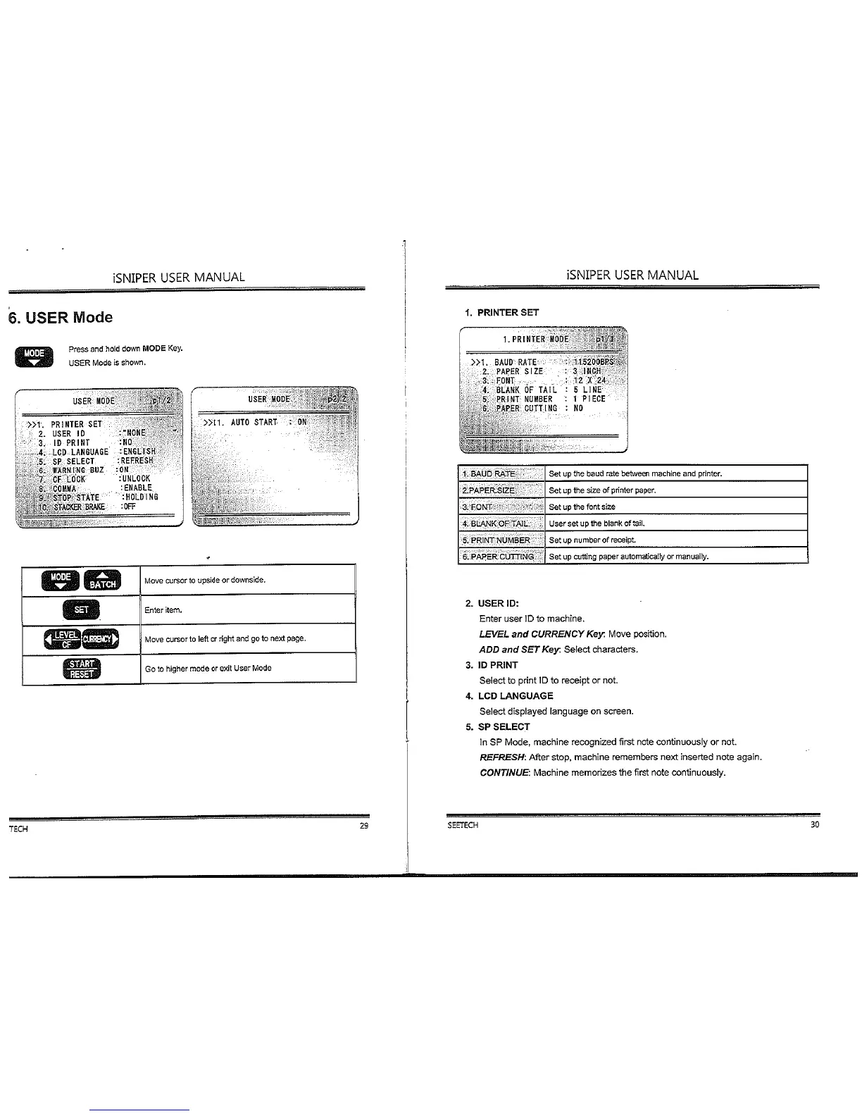 SeeTech iSniper - User Mode Configuration; Printer Setup; User Identification Settings