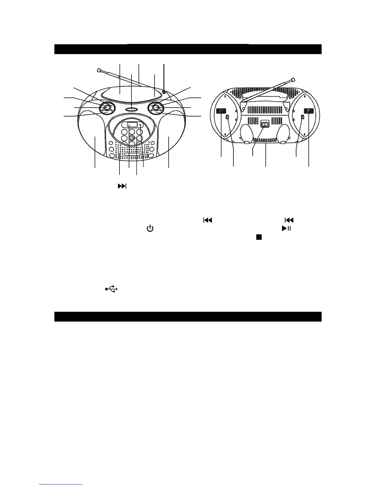 17. Pulsante STOP / CD/USB