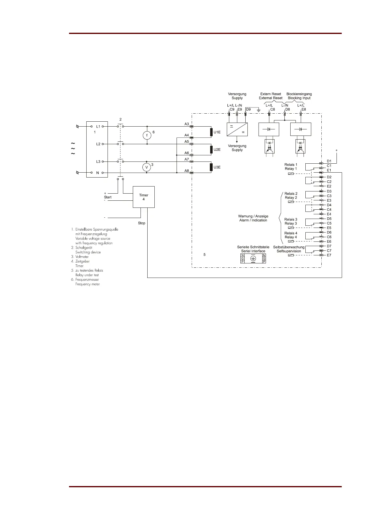 For testing the voltage functions of the MRG3-relay a three phase voltage source with adjustable
