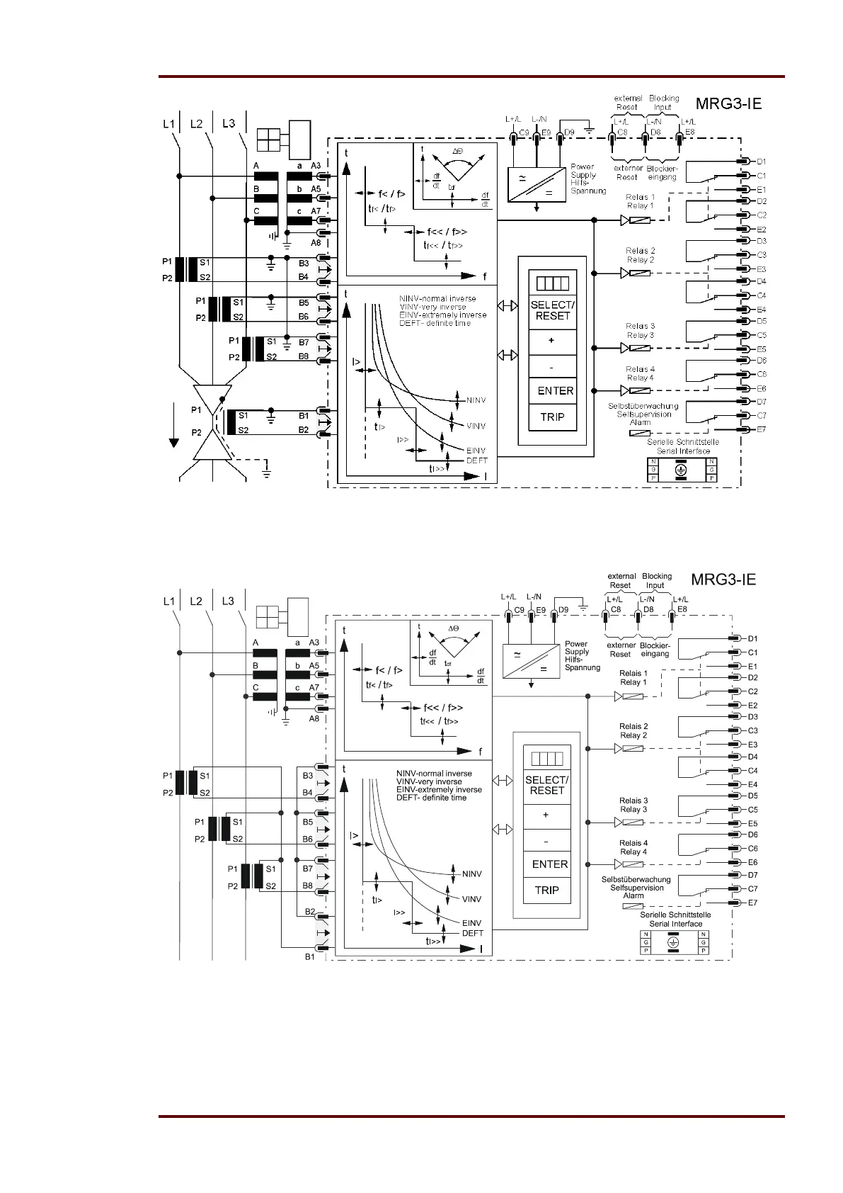 Figure 3.3: MRG3-I Connection diagram “Mains decoupling with time over current protection”