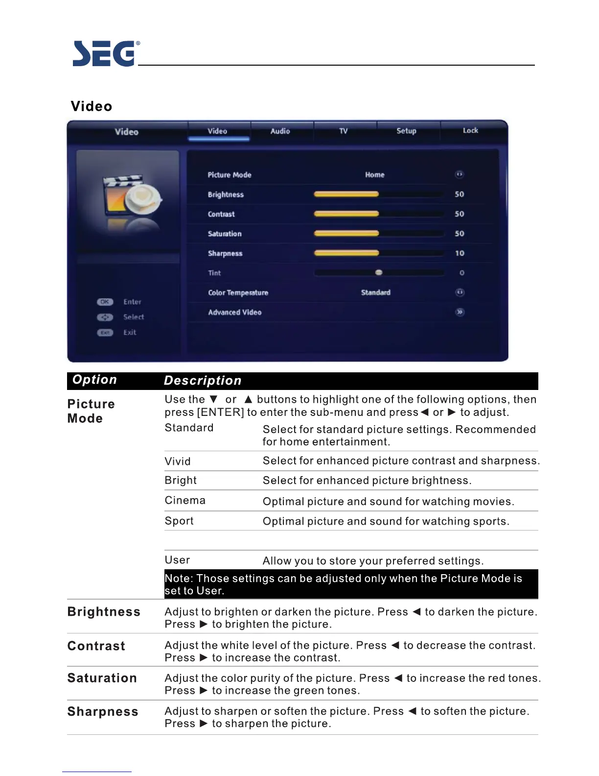 Seg Sydney - OSD Menu