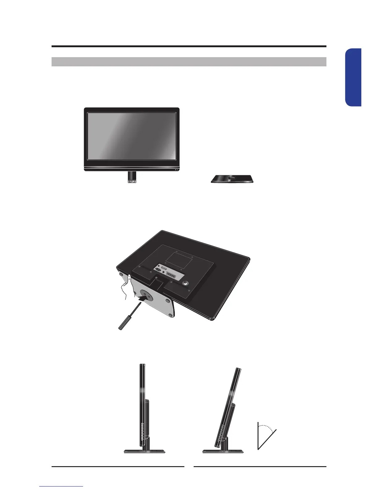 Sie am Standfuß den Winkel einstellen. Der Verstellbereich des Fernsehers