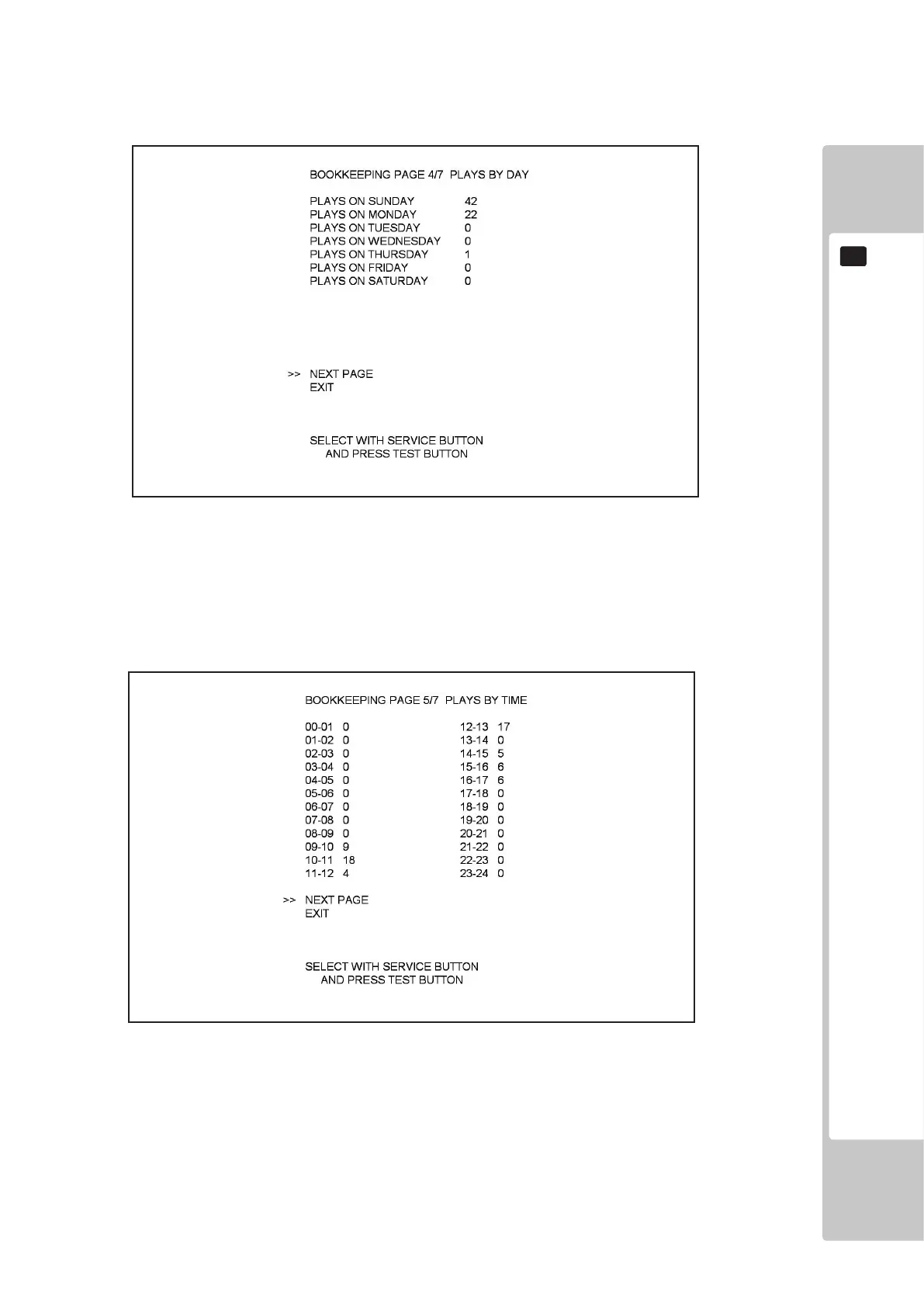 Bookkeeping – Screen 5 – Data on PLAYS BY TIME