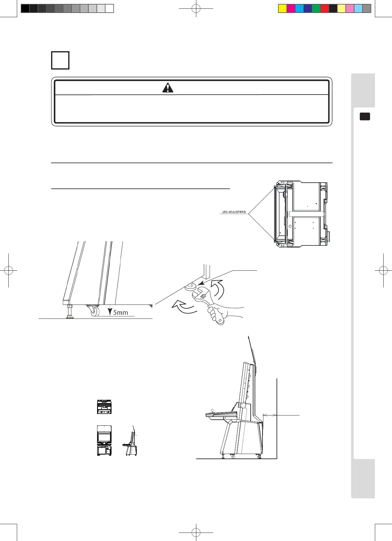 There are four casters and four adjusters on the bottom of the cabinet. Once the installation position is determined,