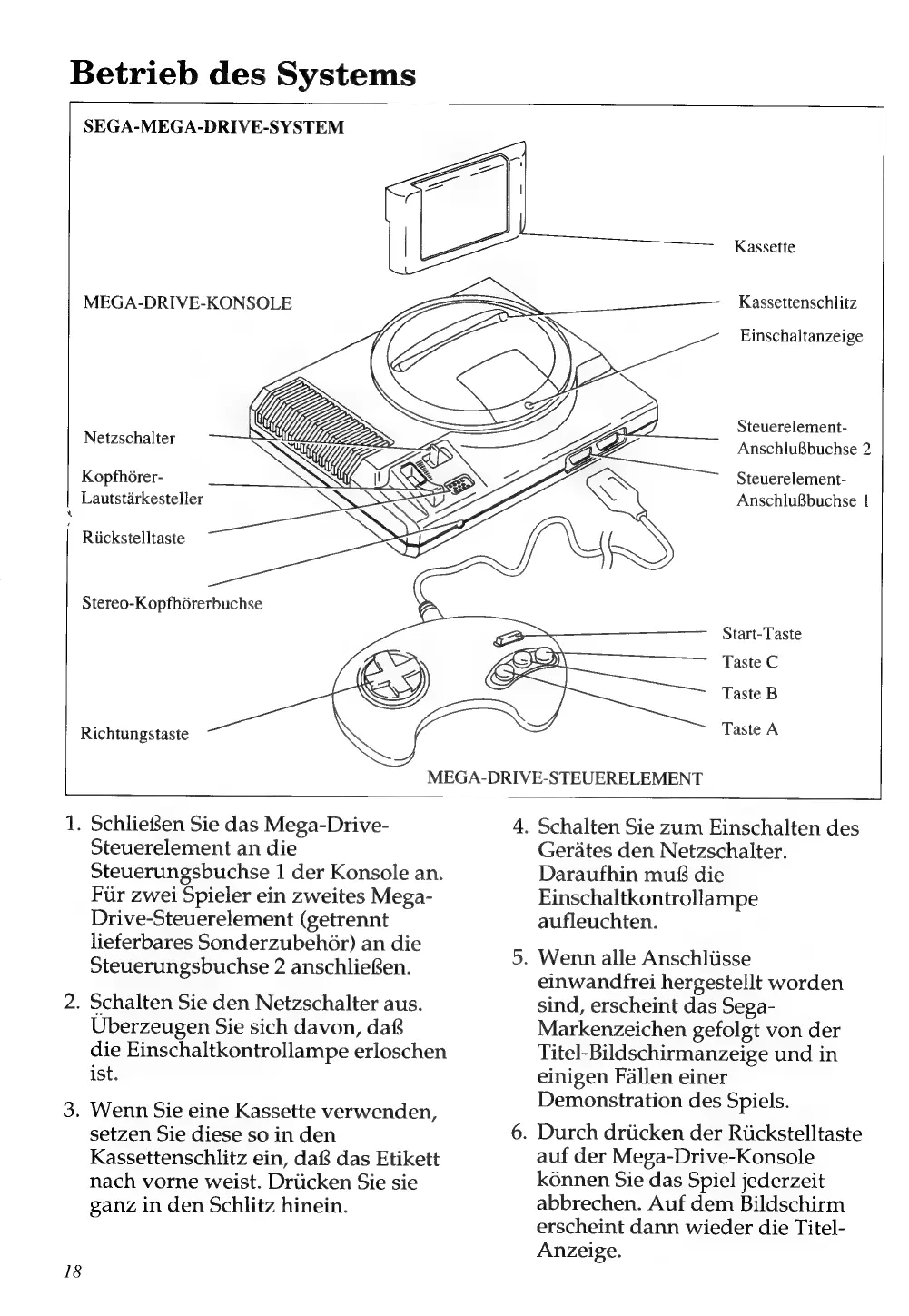 Sega Mega Drive - Betrieb des Systems