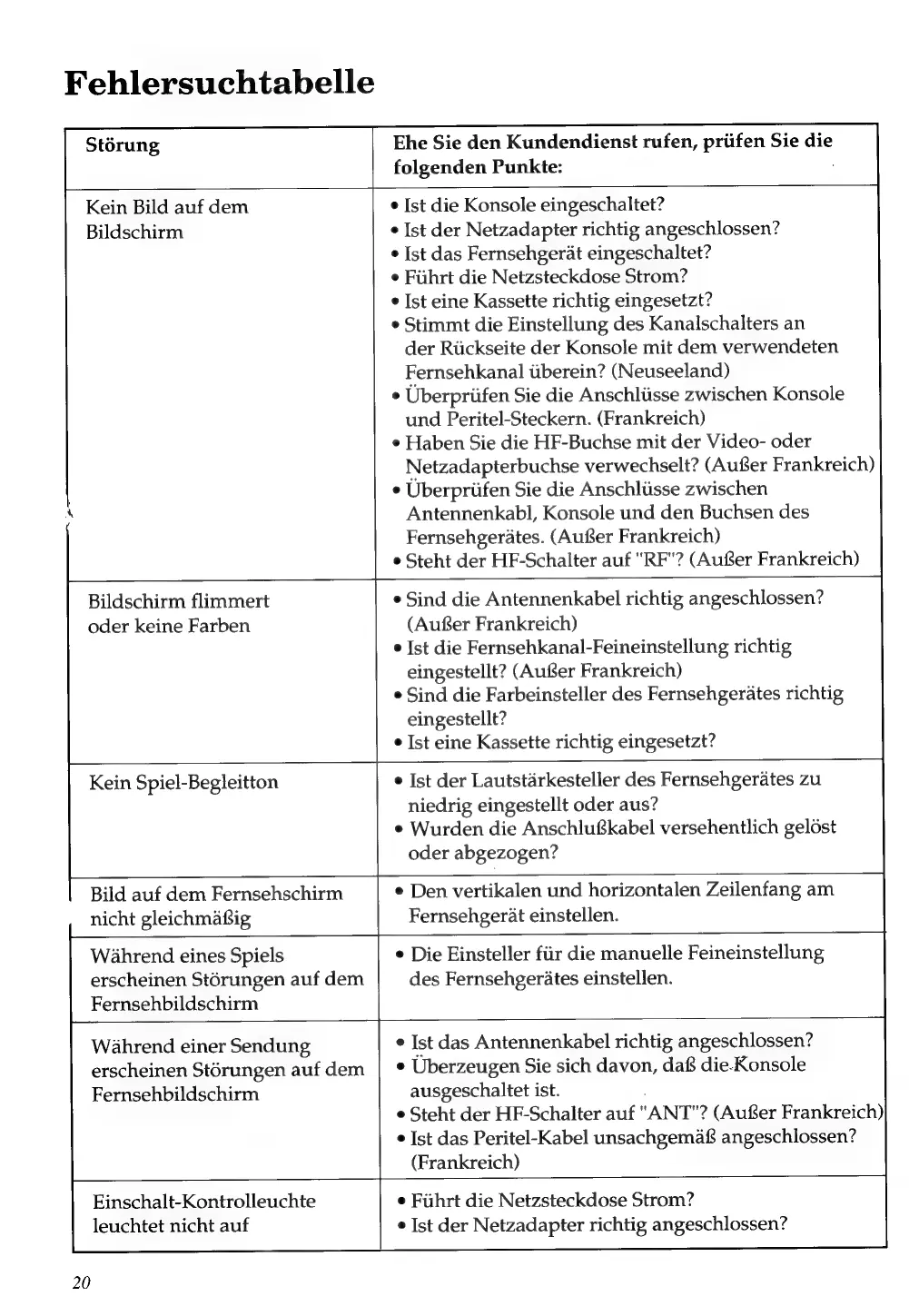 Fehlersuchtabelle