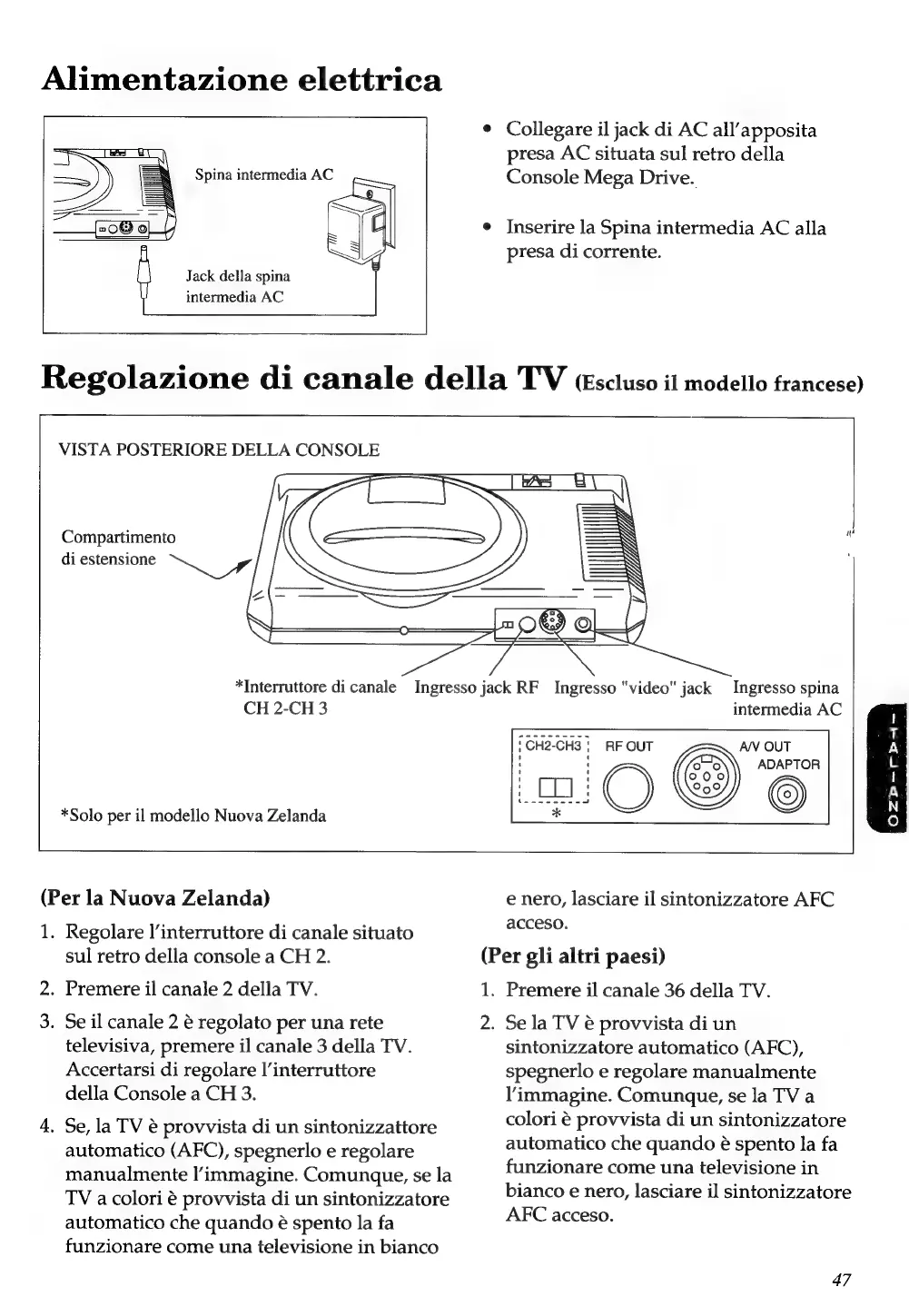 Sega Mega Drive - Alimentazione Elettrica; Regolazione del Canale Della TV