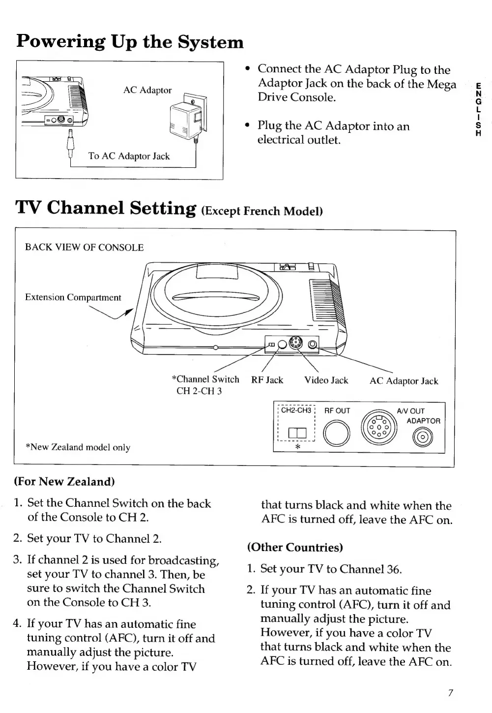 Sega Mega Drive - Powering up the System; TV Channel Setting