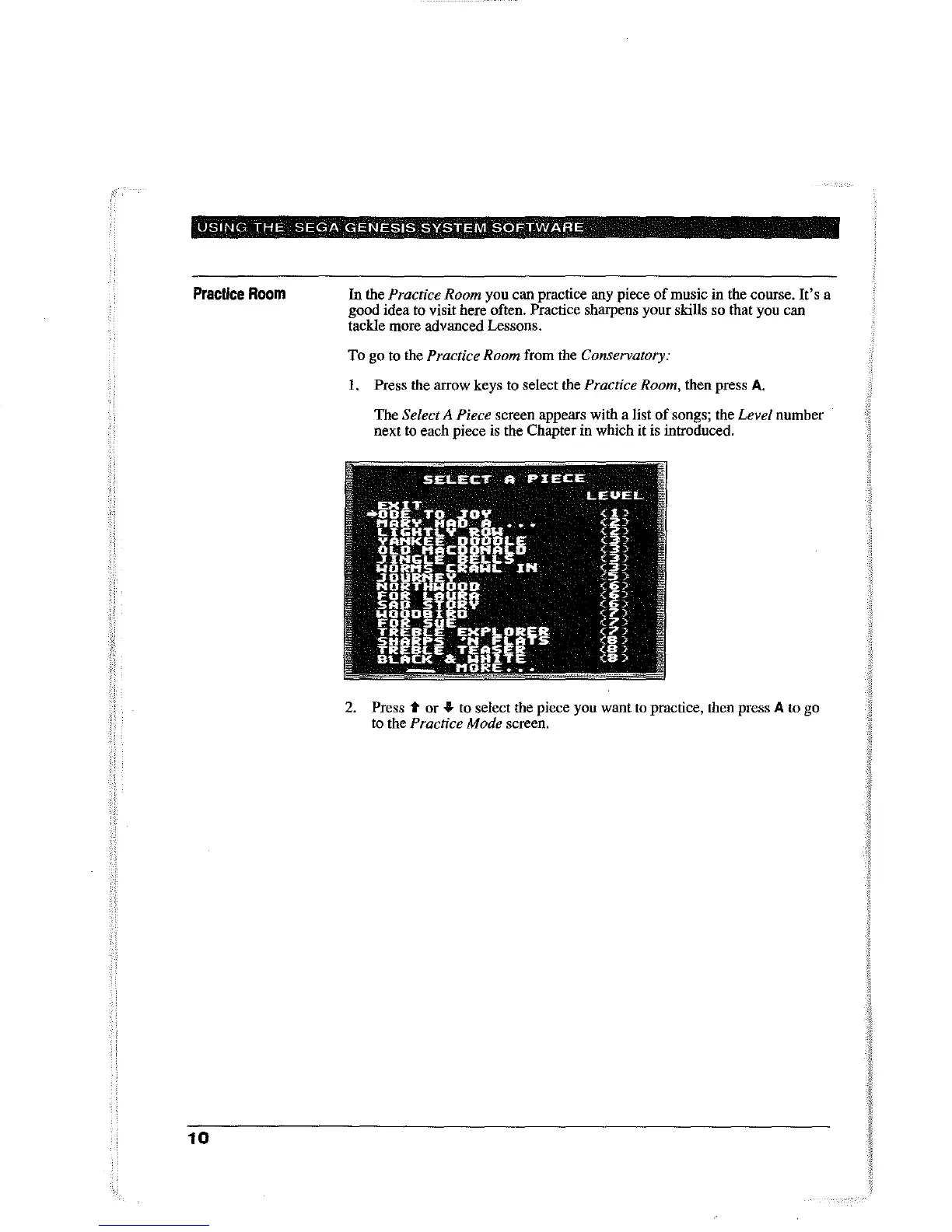 Press the arrow keys to select the Practice Room, then press