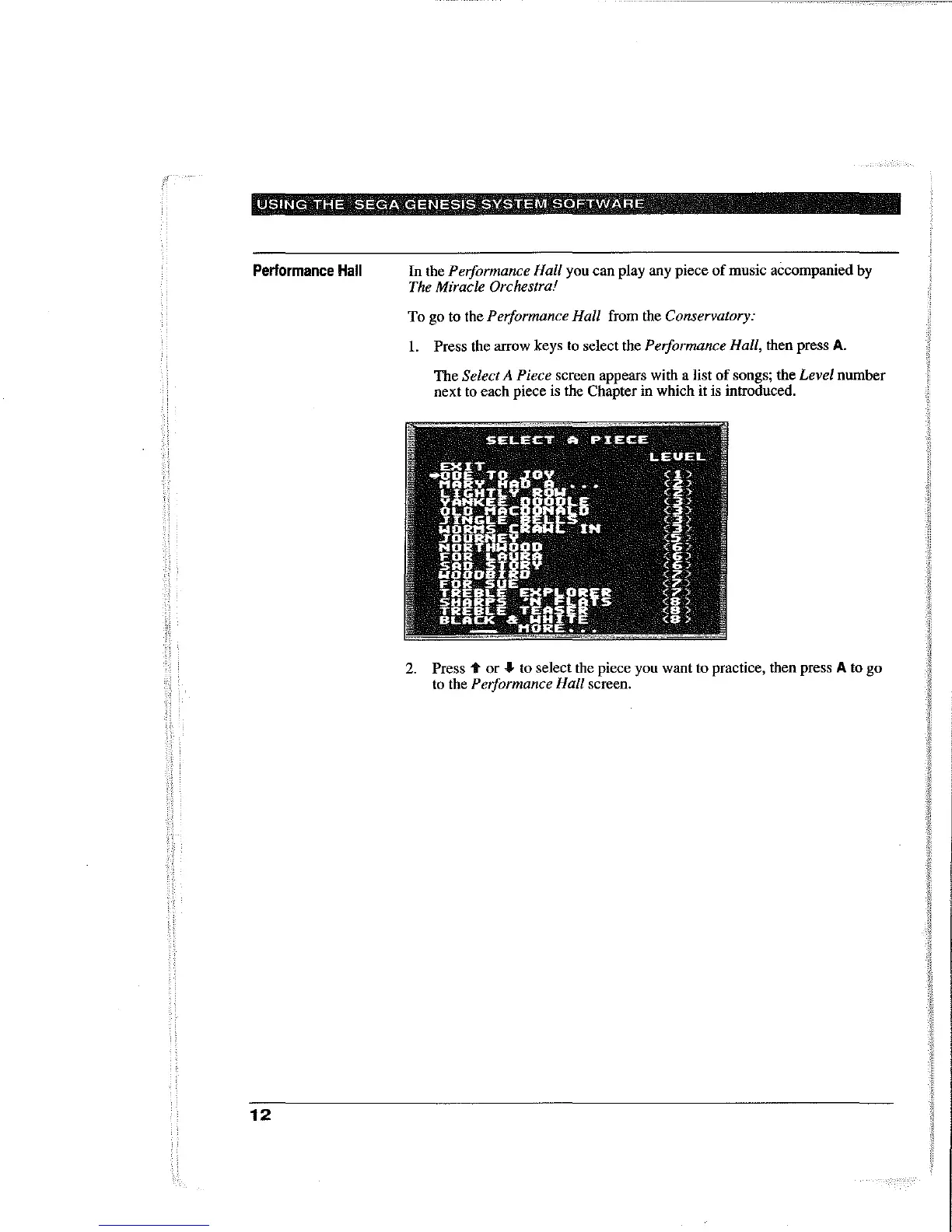 In the Performance Hall you can play any piece