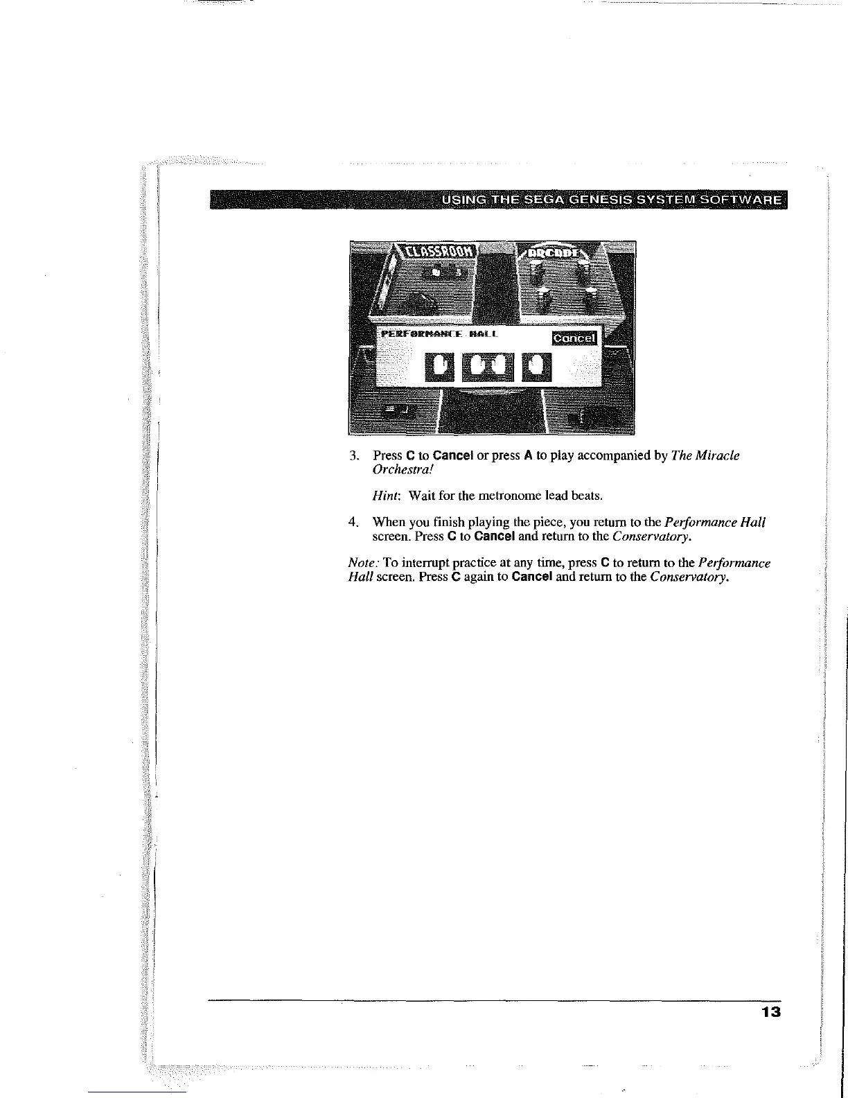 time, press C to return to the Peiformnnce