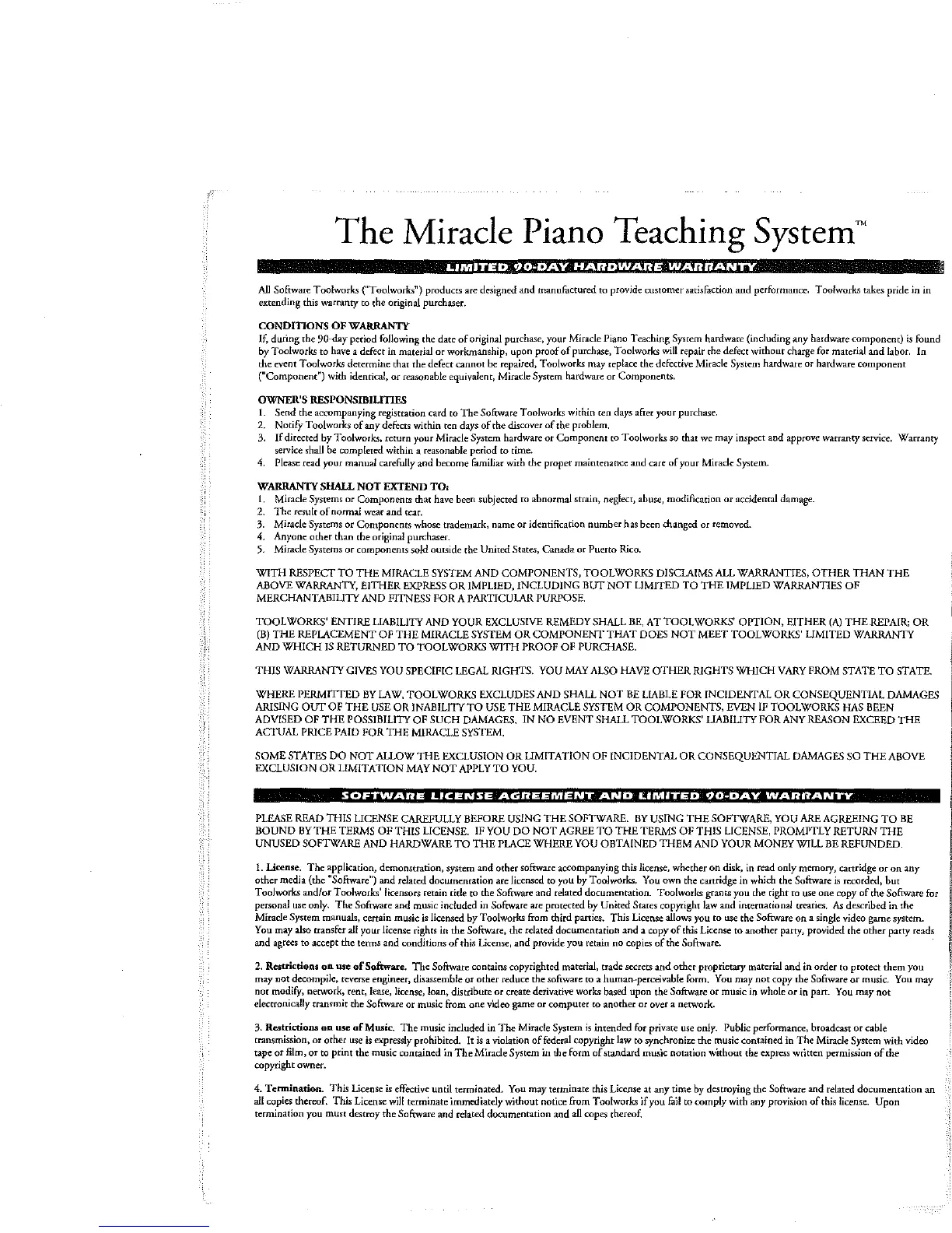 original purchase, your Miracle Piano Teaching System hardware (including any hardware component)