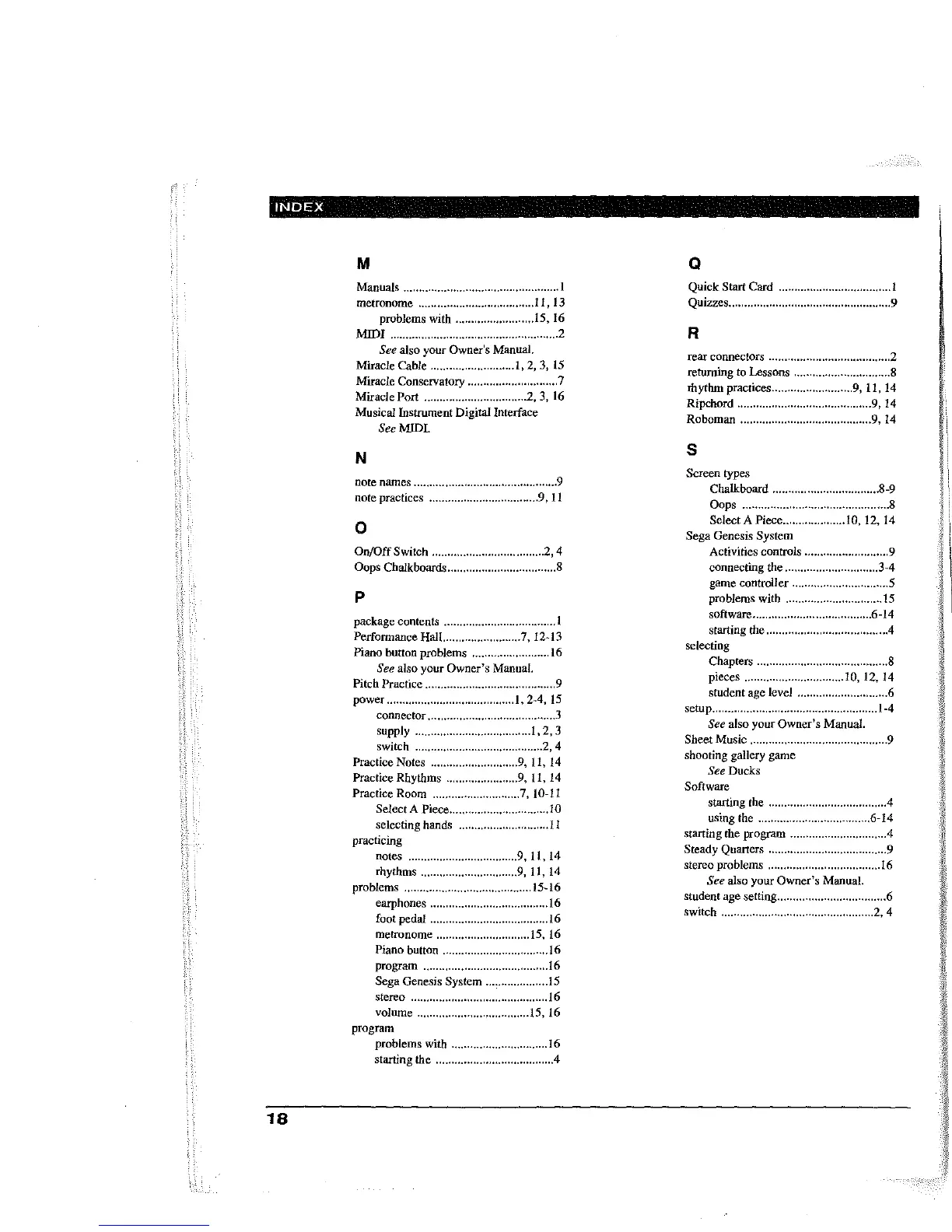 Piano button problems ......................... 16
