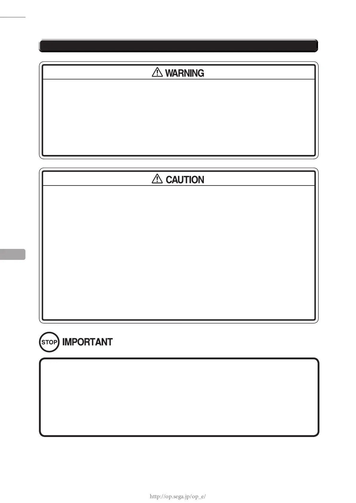 ● When opening/closing or attaching/removing doors or other parts, be careful