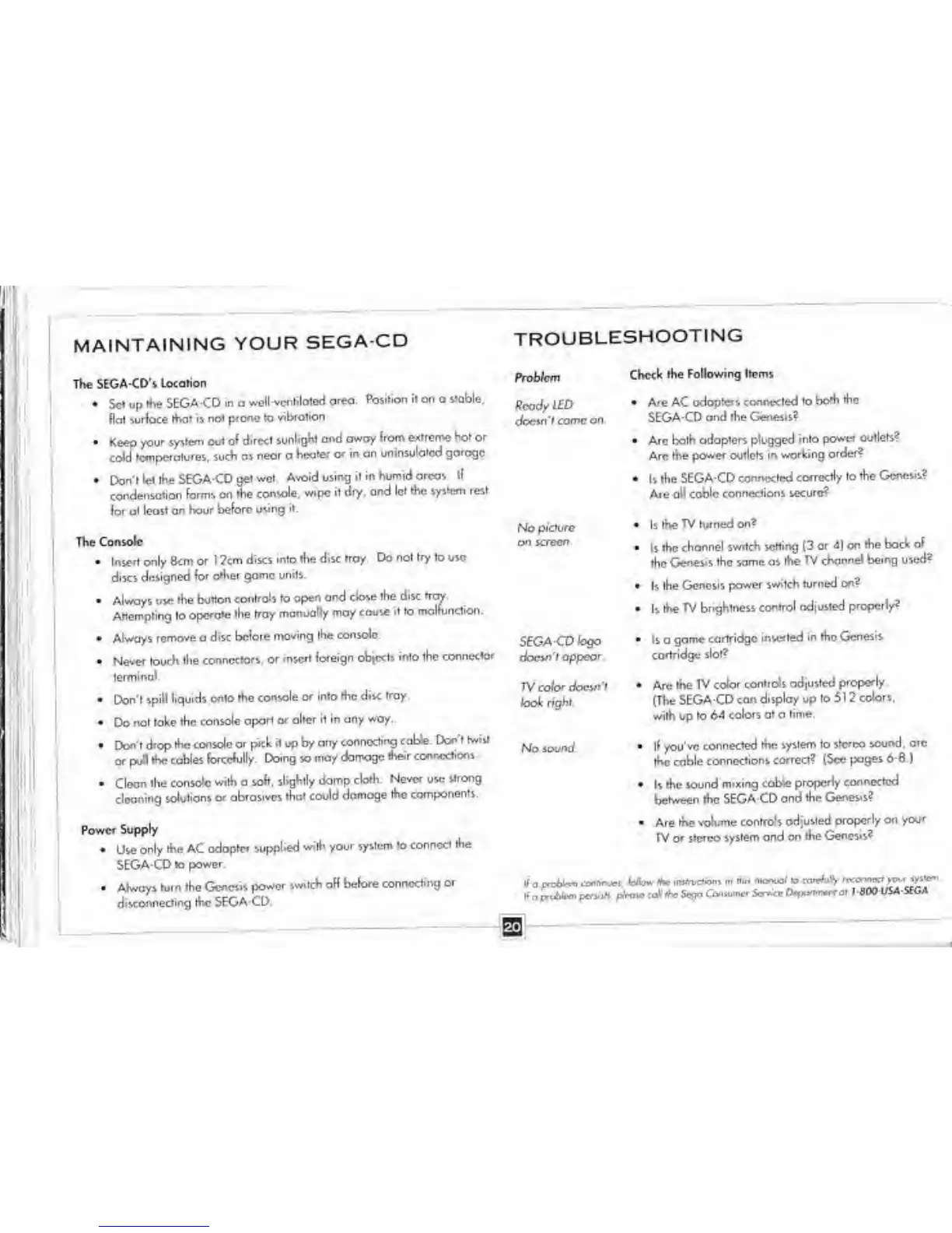 Sega SEGA-CD - Maintaining Your SEGA-CD; Troubleshooting Common Issues