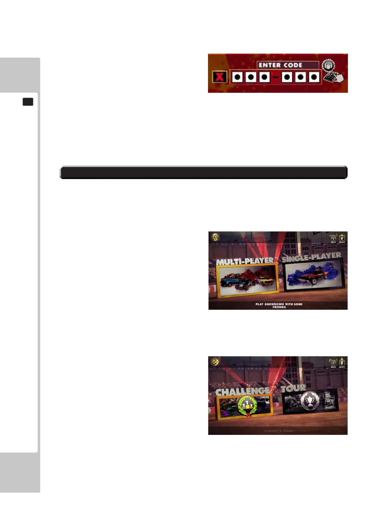 straight to a Single Player game where they are given the option between CHALLENGE and TOUR.