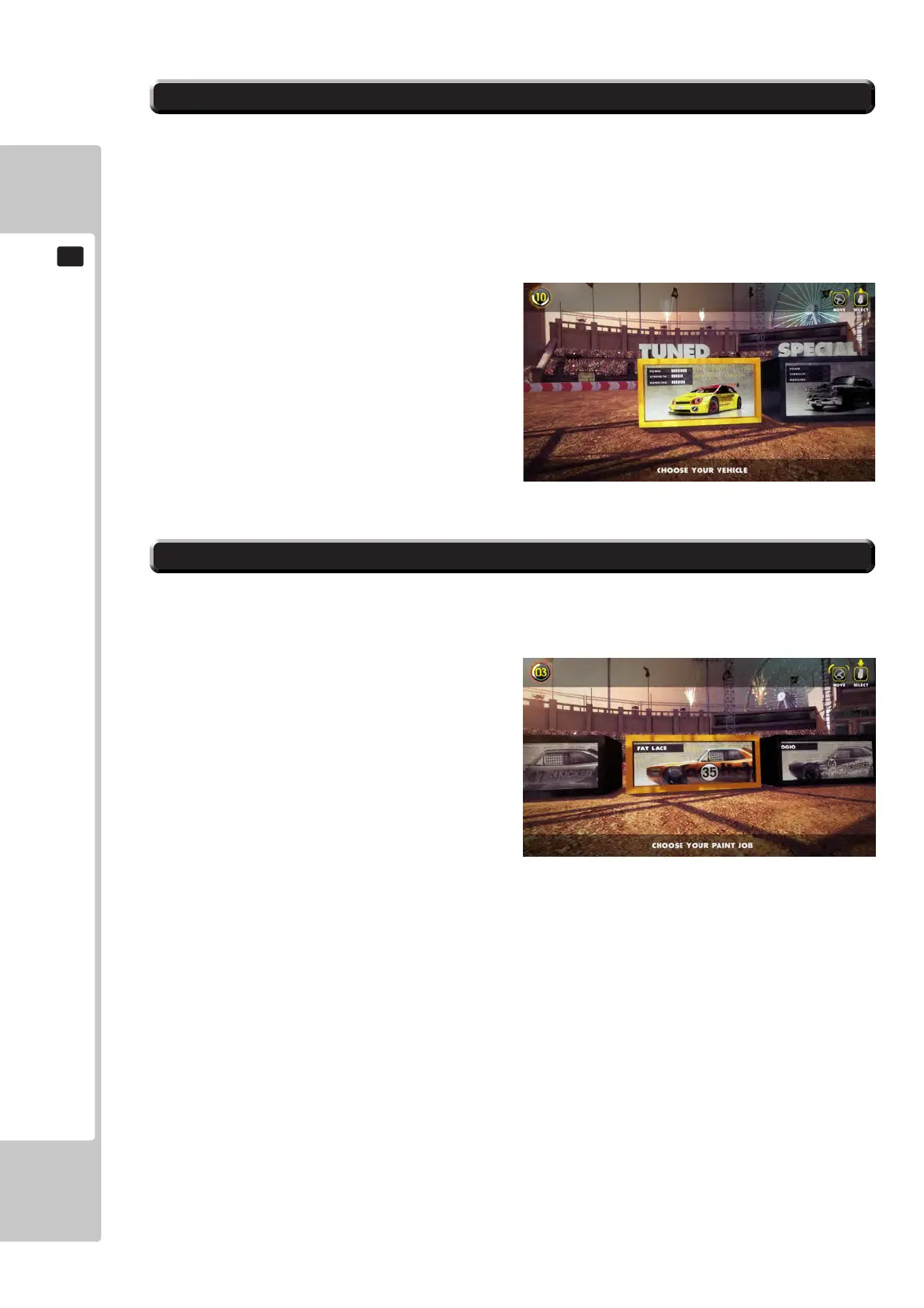 The next choice for the player is to select which car to drive. There are ten car classes featuring twenty cars - from