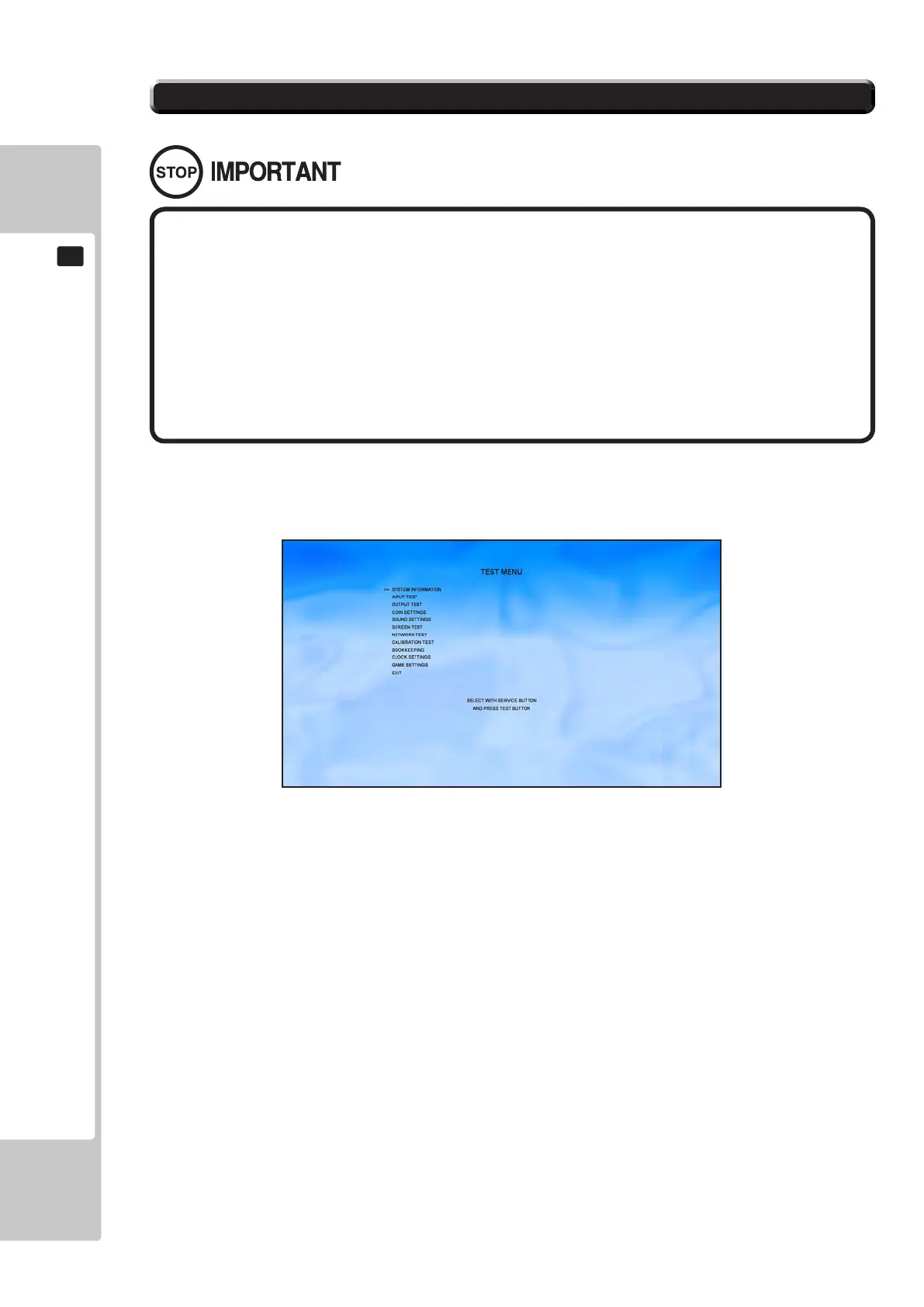 Use the SERVICE button to move the cursor to the desired test item. Press the TEST button to enter the selected