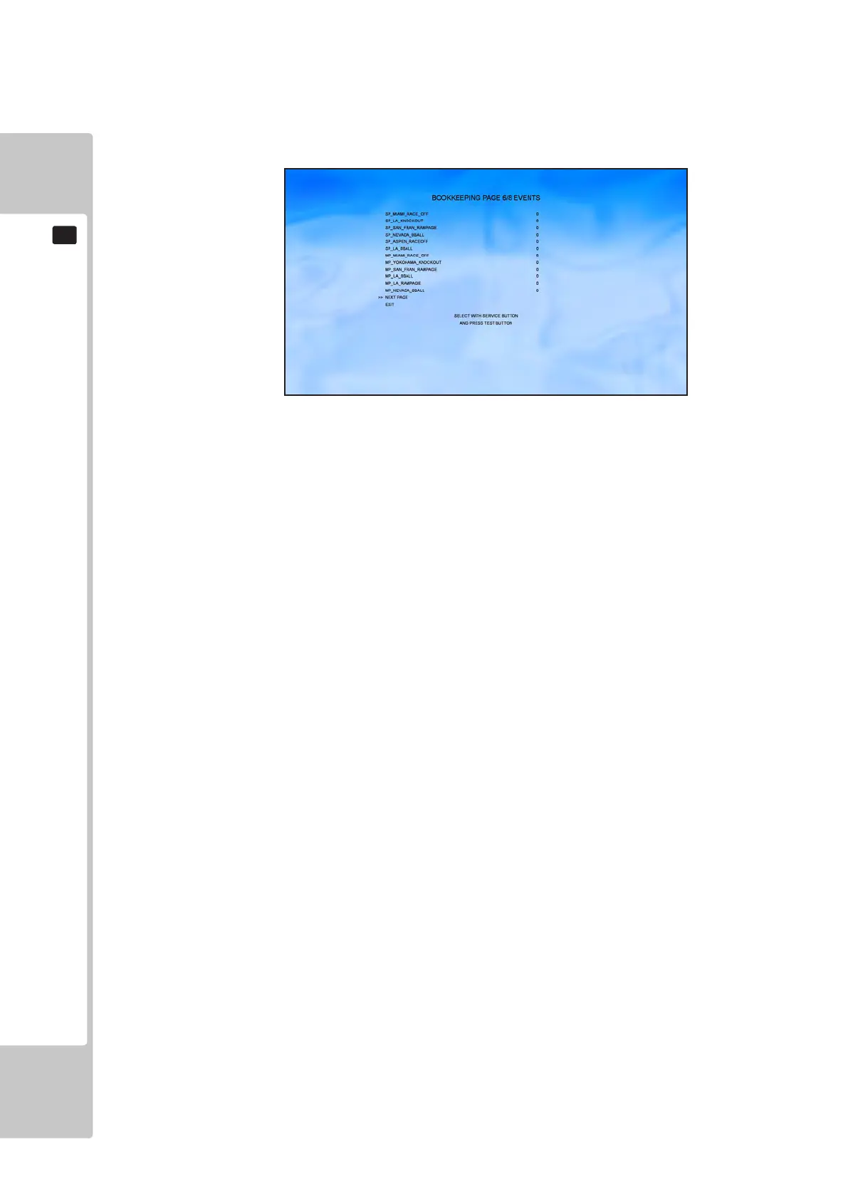Move the cursor to NEXT PAGE and press the TEST button to proceed to bookkeeping screen #7.