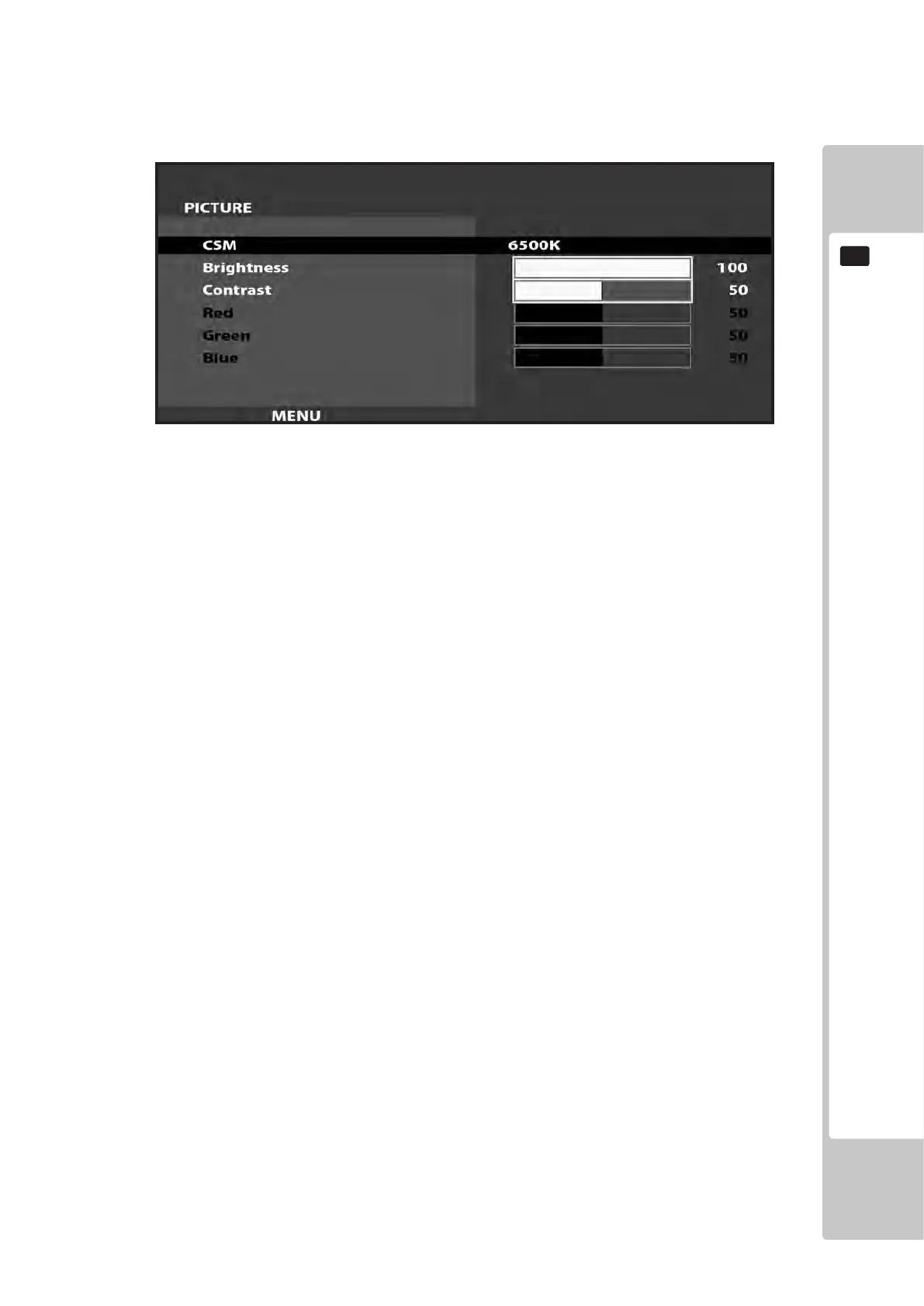 NOTE : The Red, Green, and Blue adjustments are unavailable in the Mode of Operation selected on the Screen