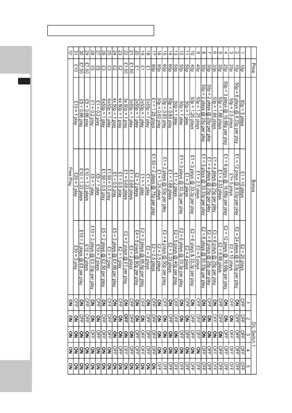 STERLING PRICE OF PLAY SETTINGS (SW1)