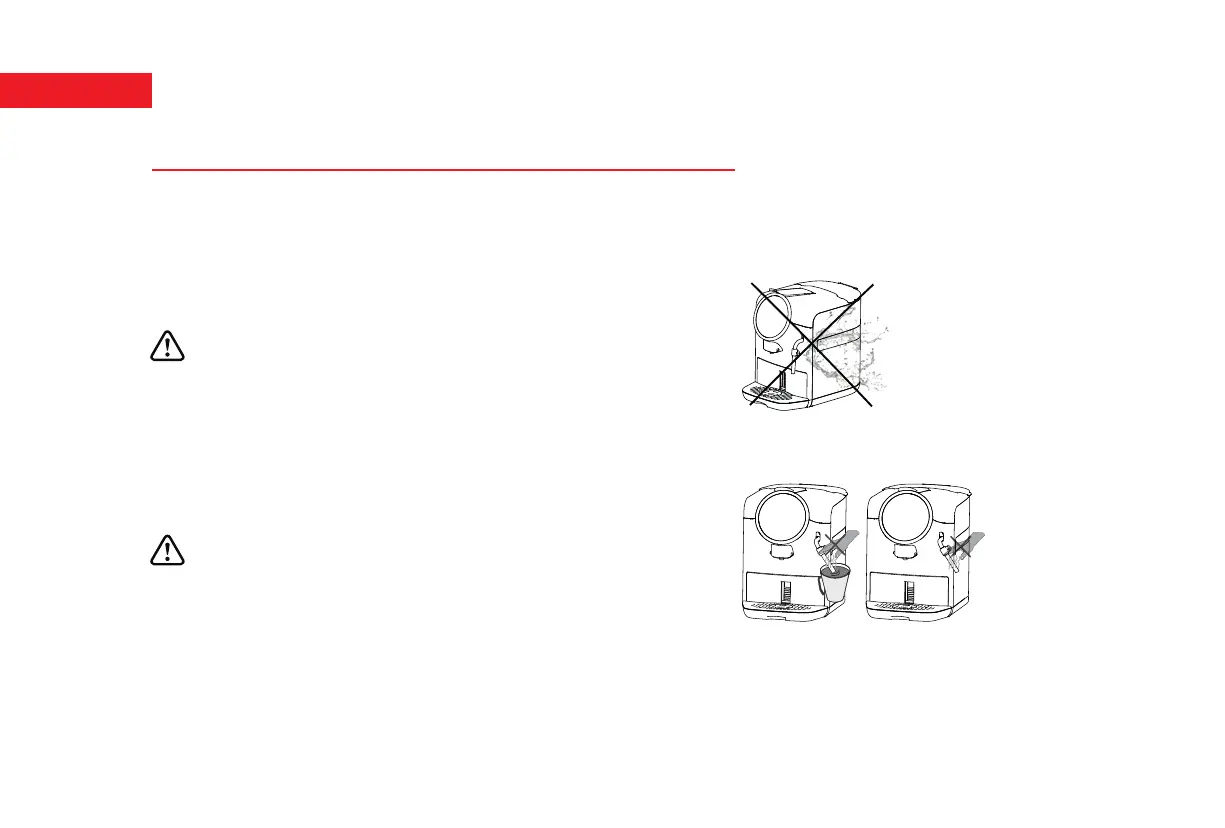 Never pour water directly on the machine.