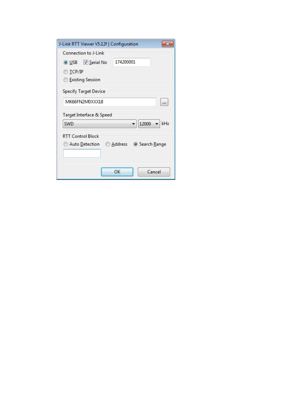 Select the target device to connect to. This allows J-Link to search in the known RAM