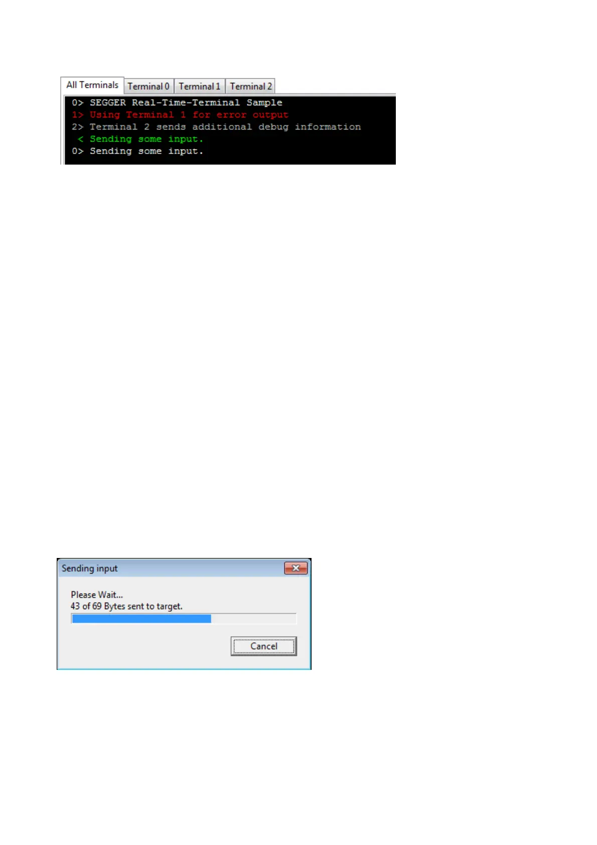 the target application with SEGGER_RTT_GetKey() and SEGGER_RTT_Read().